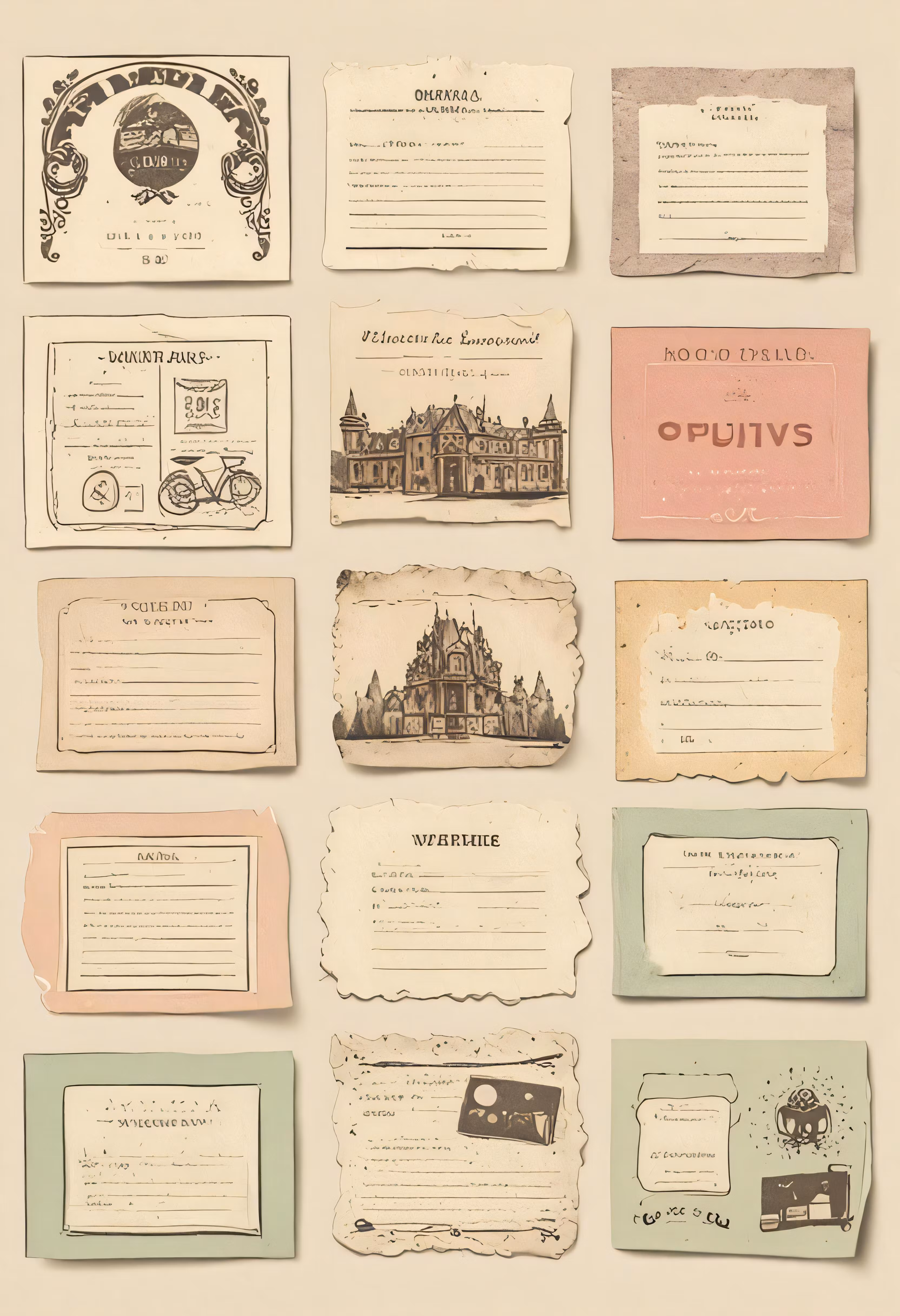 High resolution picture, free to use, a variety of different types of vintage labels