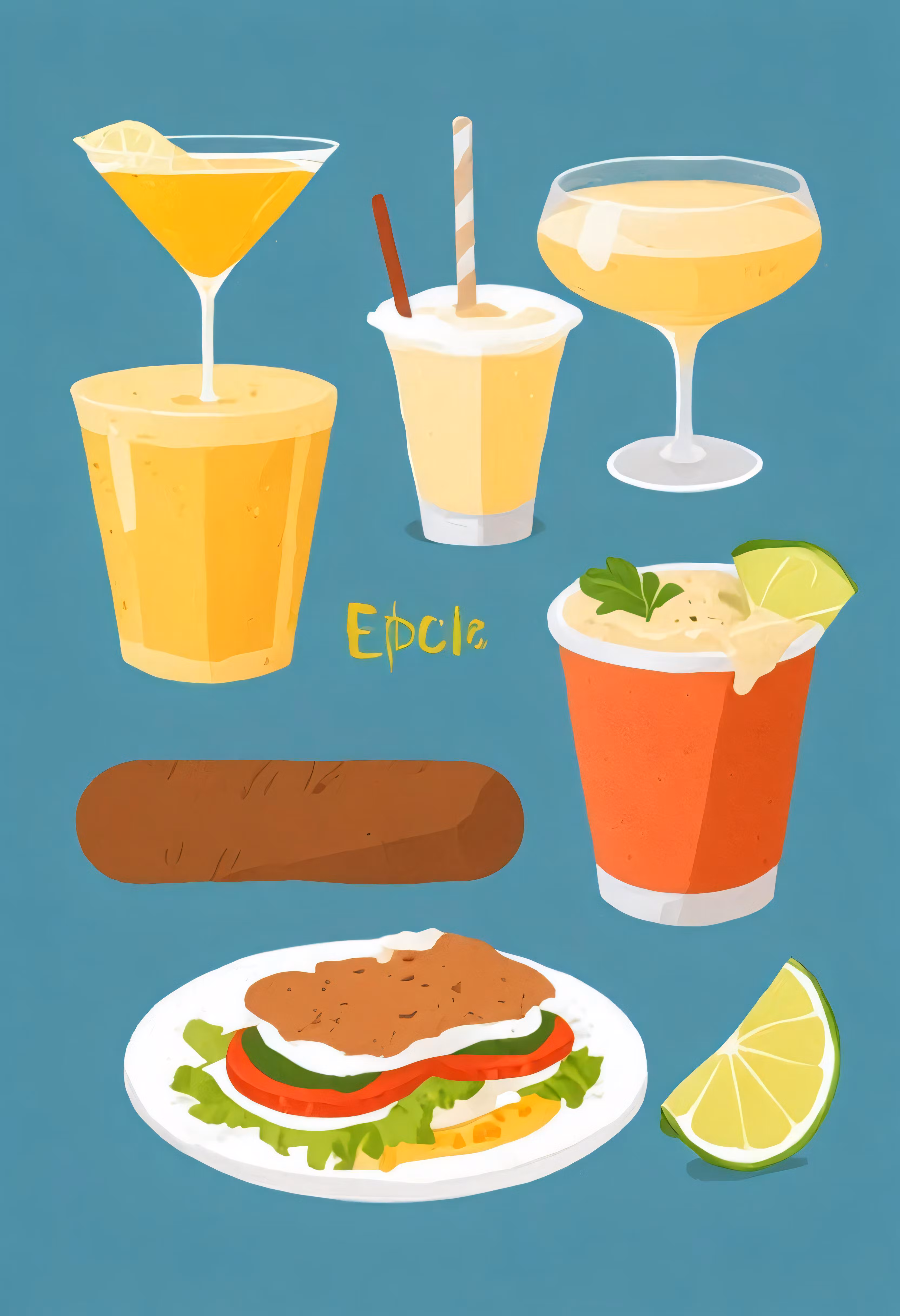 High resolution picture, free to use, a variety of drinks and food on plates