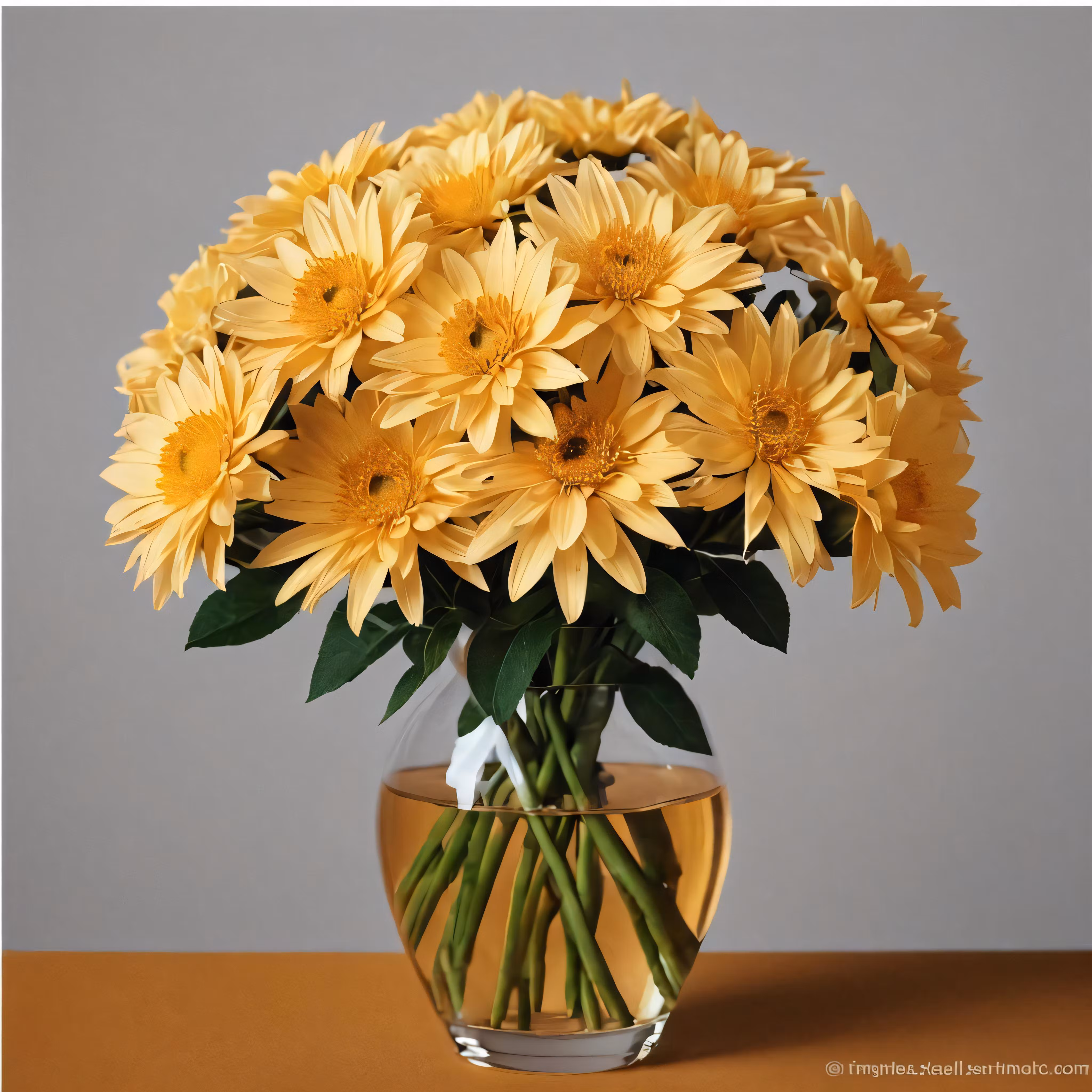 High resolution picture, free to use, a vase filled with yellow flowers on top of a table