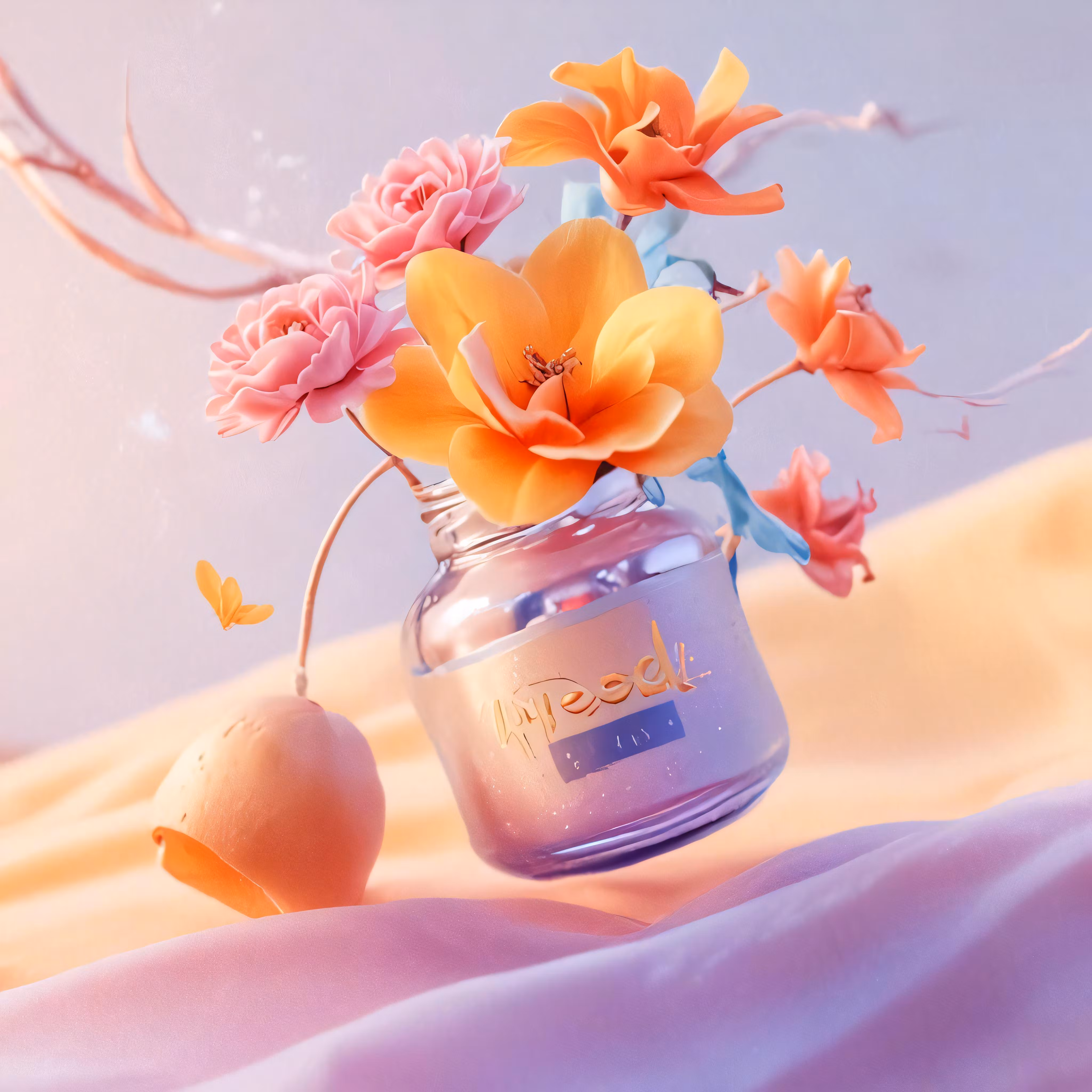 High resolution picture, free to use, a vase with a variety of flowers sits atop a purple cloth