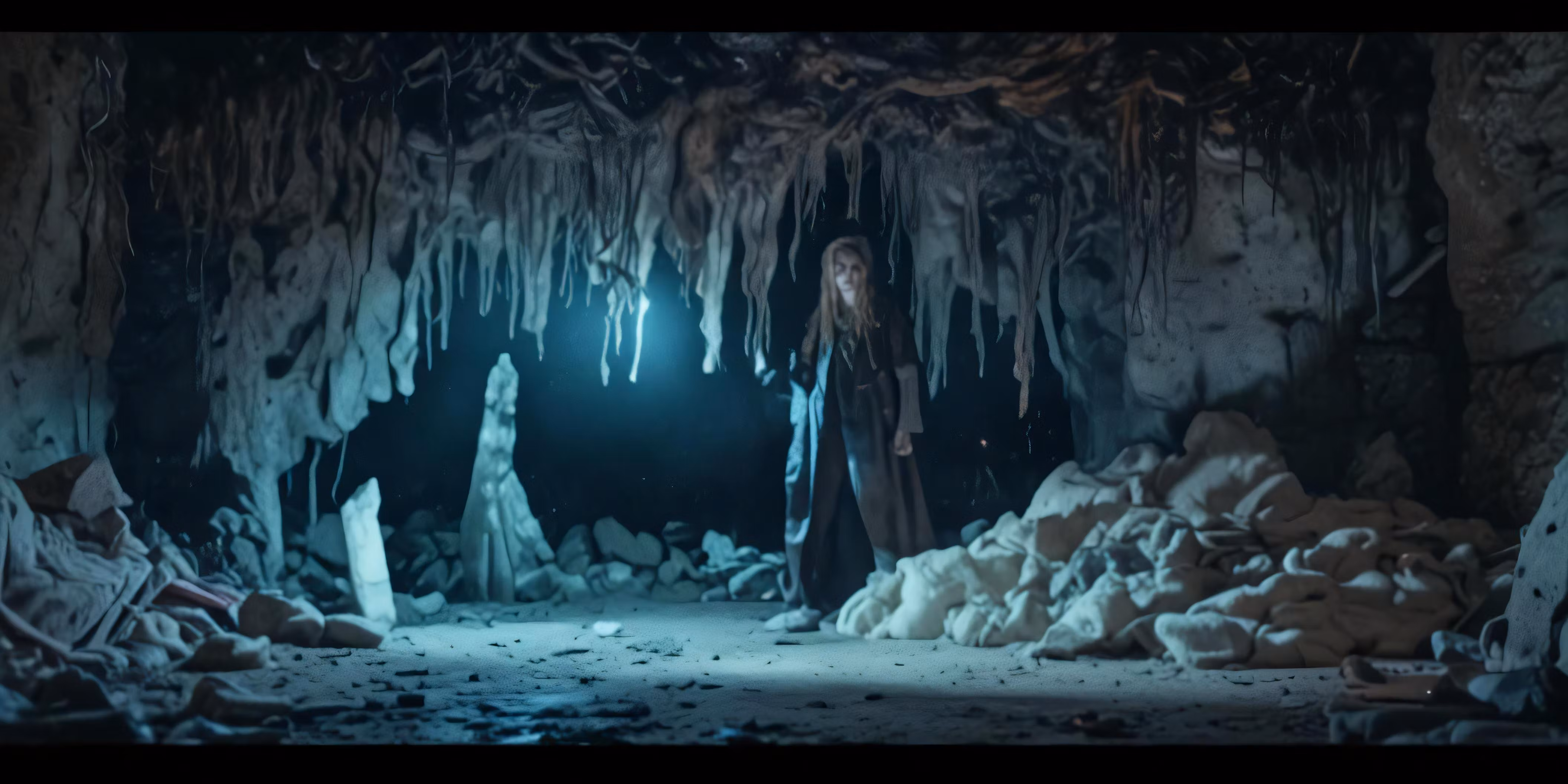 High resolution picture, free to use, a very big cave with a pretty girl in it