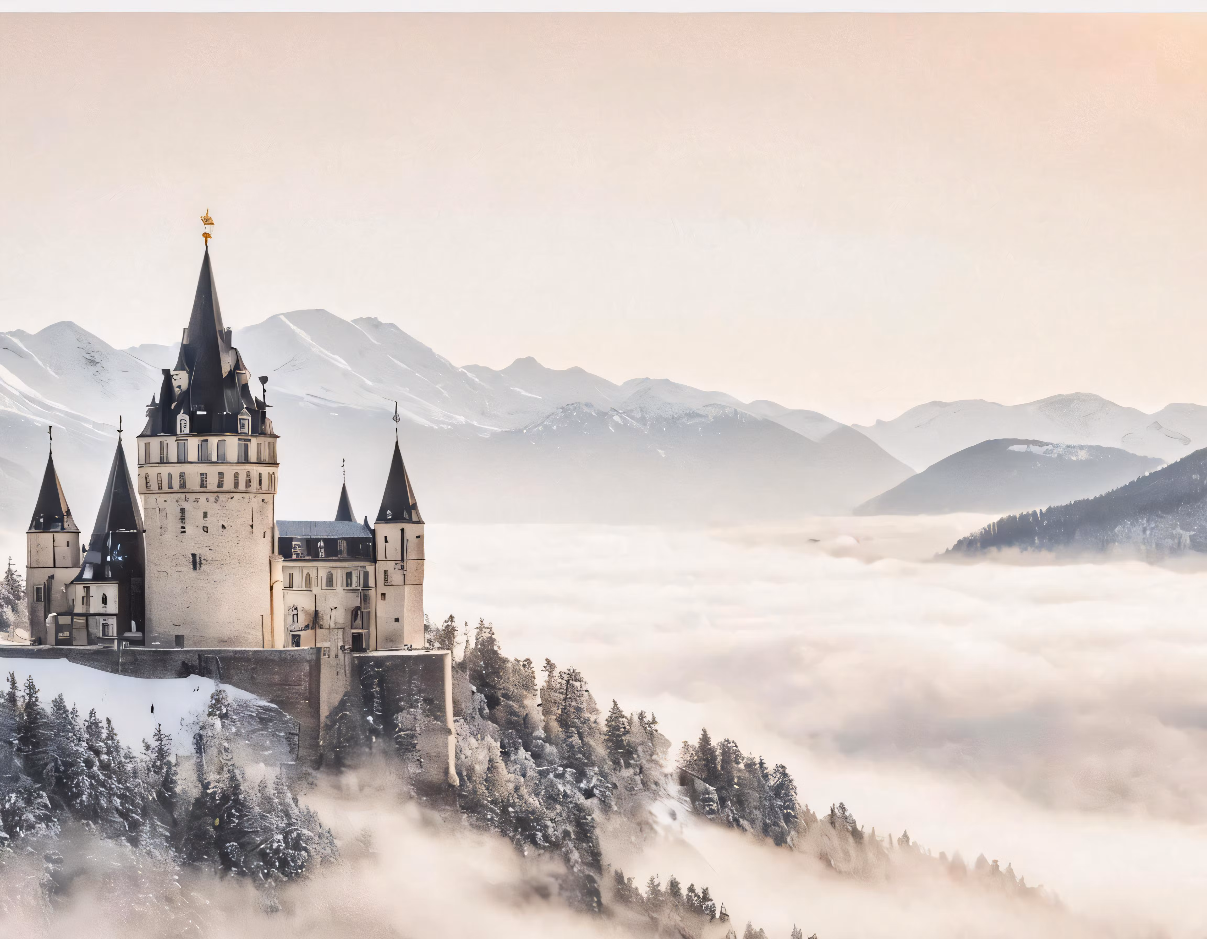 High resolution picture, free to use, a very big pretty castle with a lot of fog