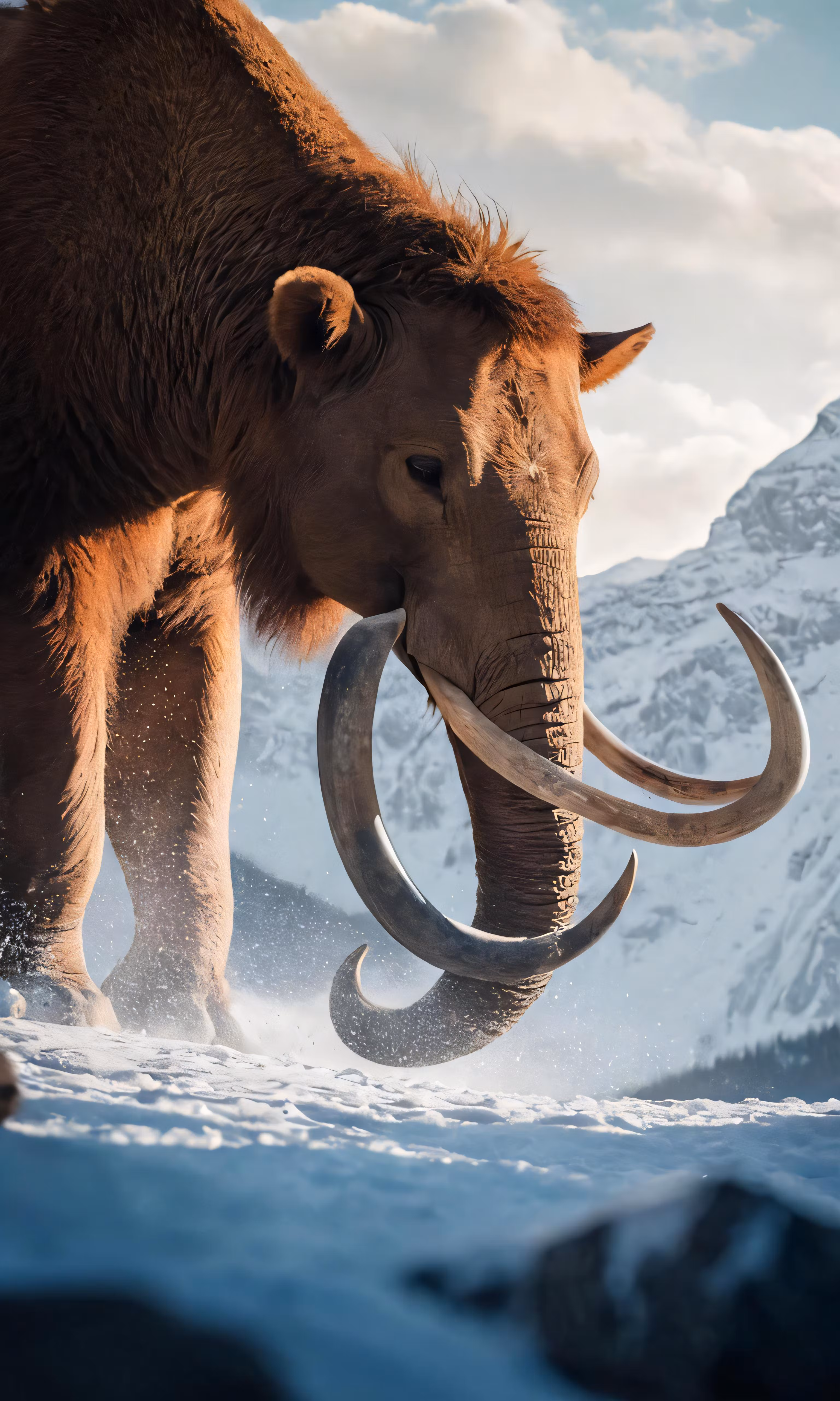 High resolution picture, free to use, a very big pretty mammoth standing in the snow