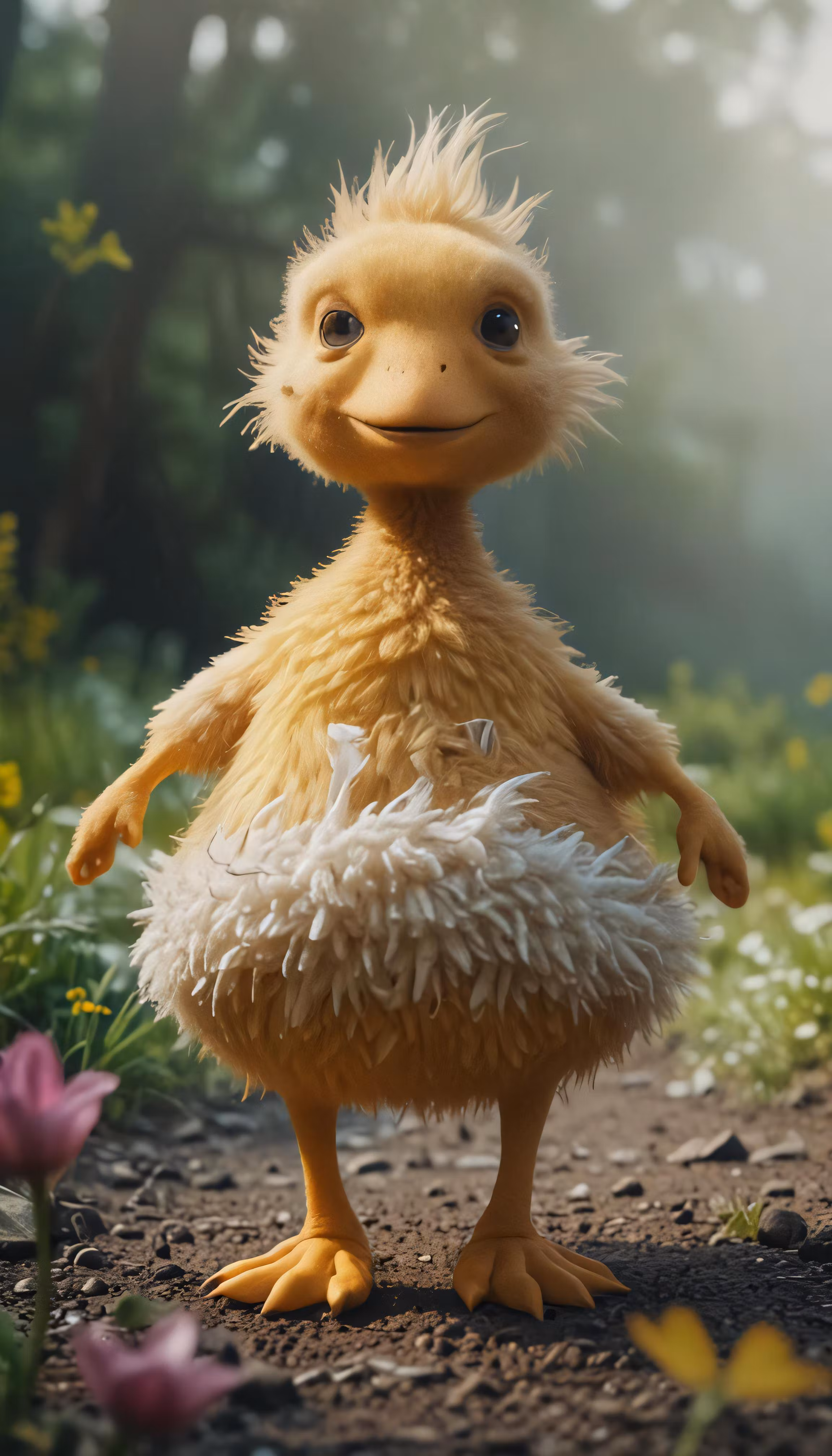 High resolution picture, free to use, a very cute furry duck standing on a dirt path