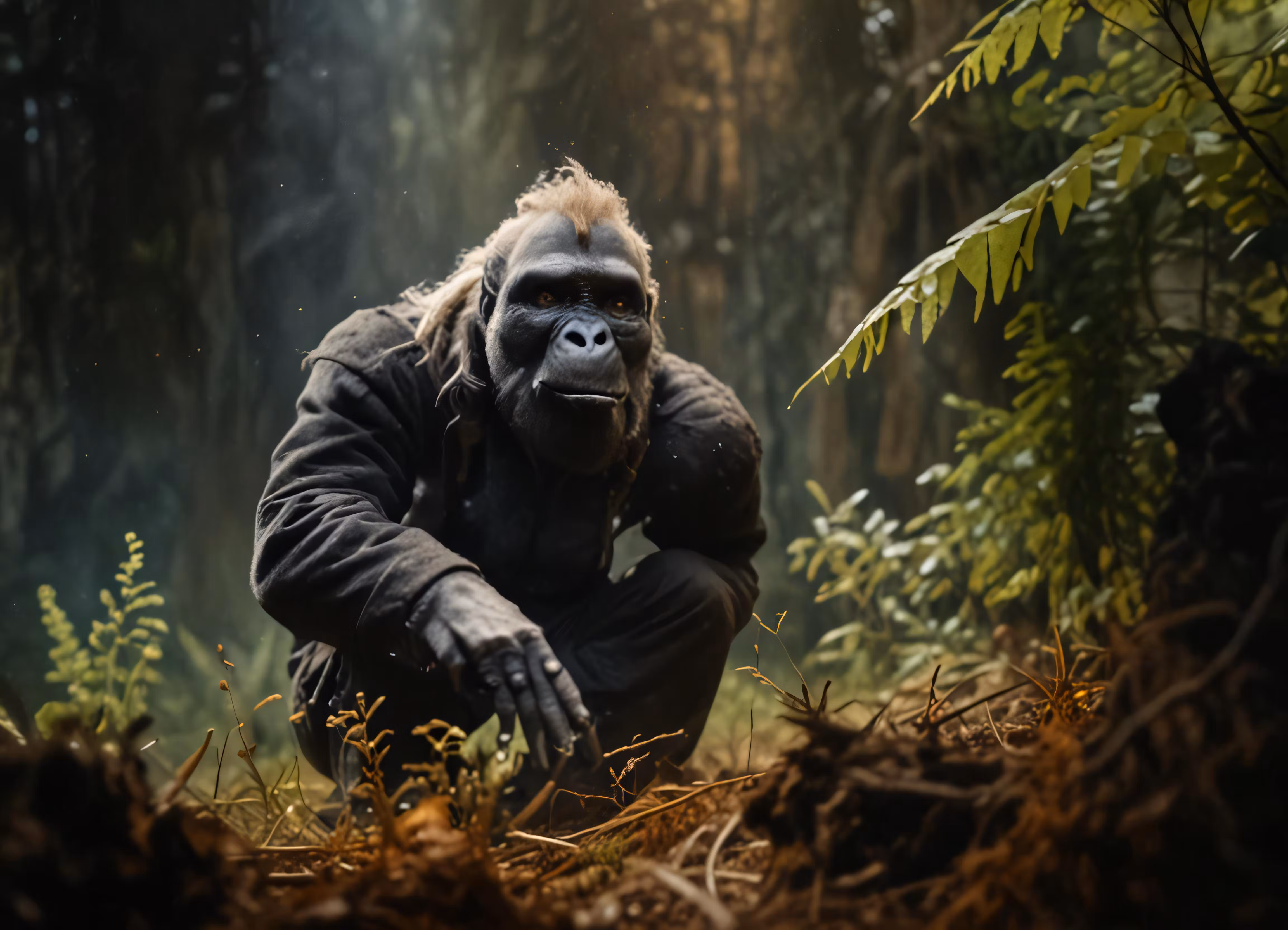 High resolution picture, free to use, a very cute gorilla that is sitting in the dirt
