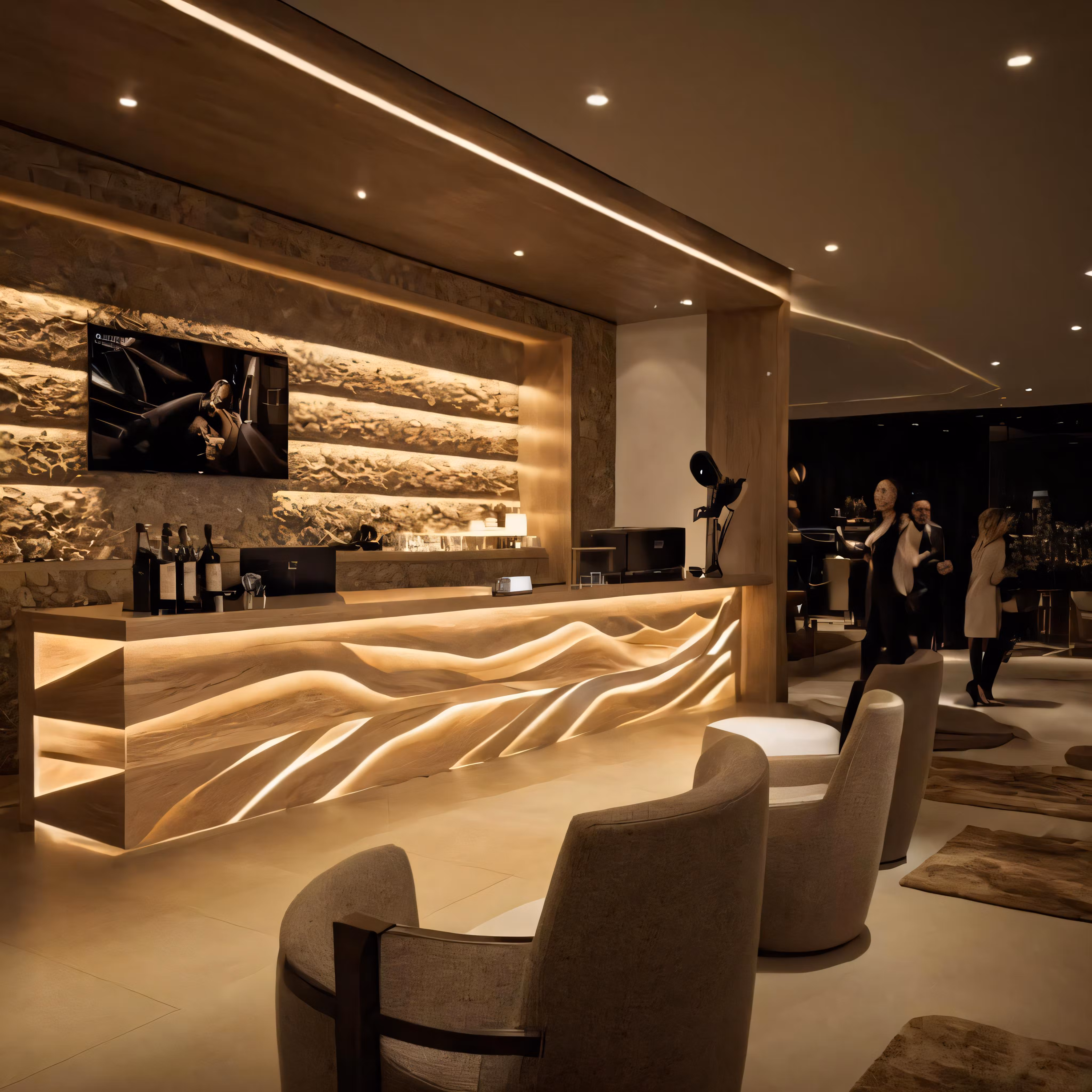 High resolution picture, free to use, a very elegant hotel lobby with modern decor