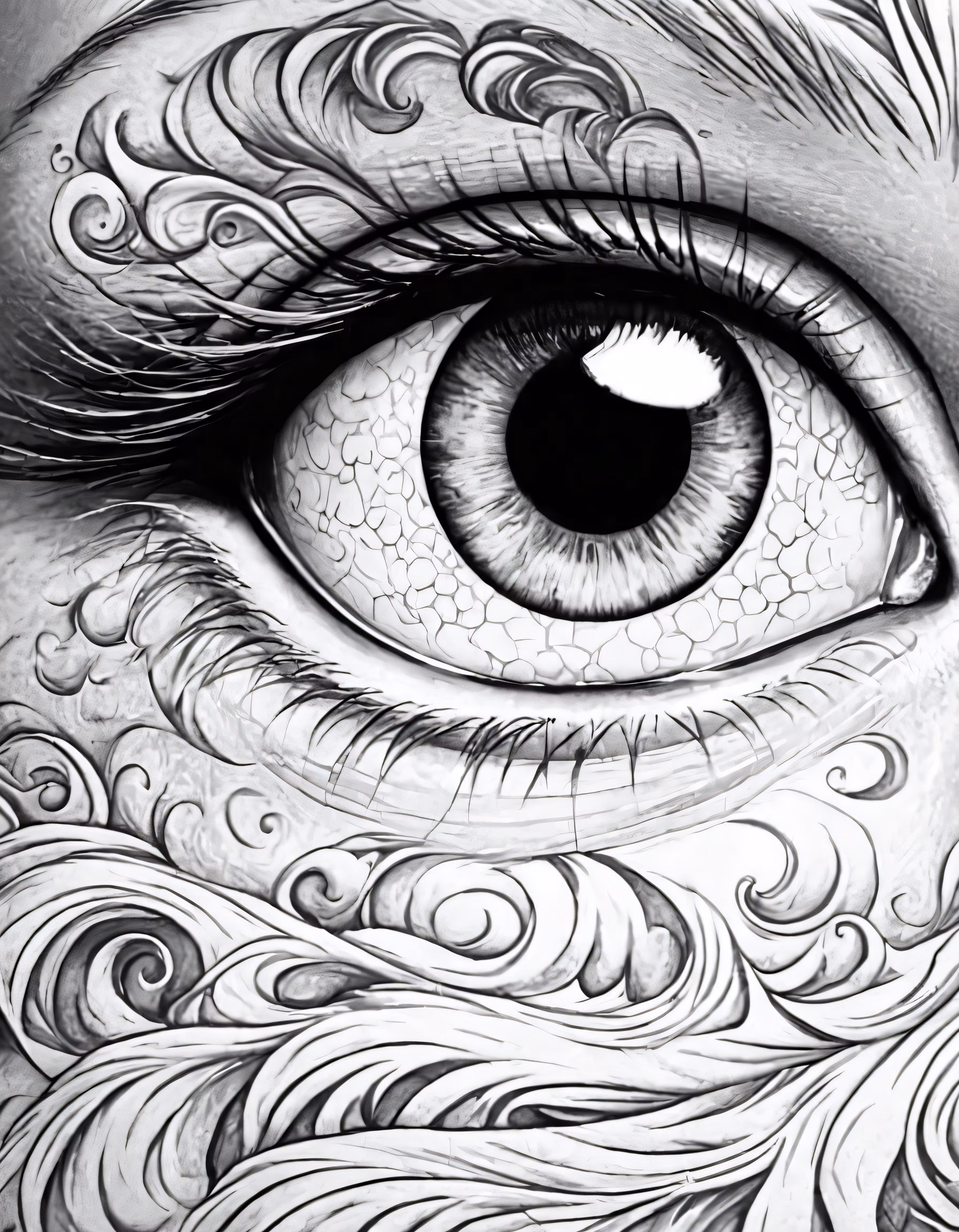 High resolution picture, free to use, a very intricately detailed drawing of an eye