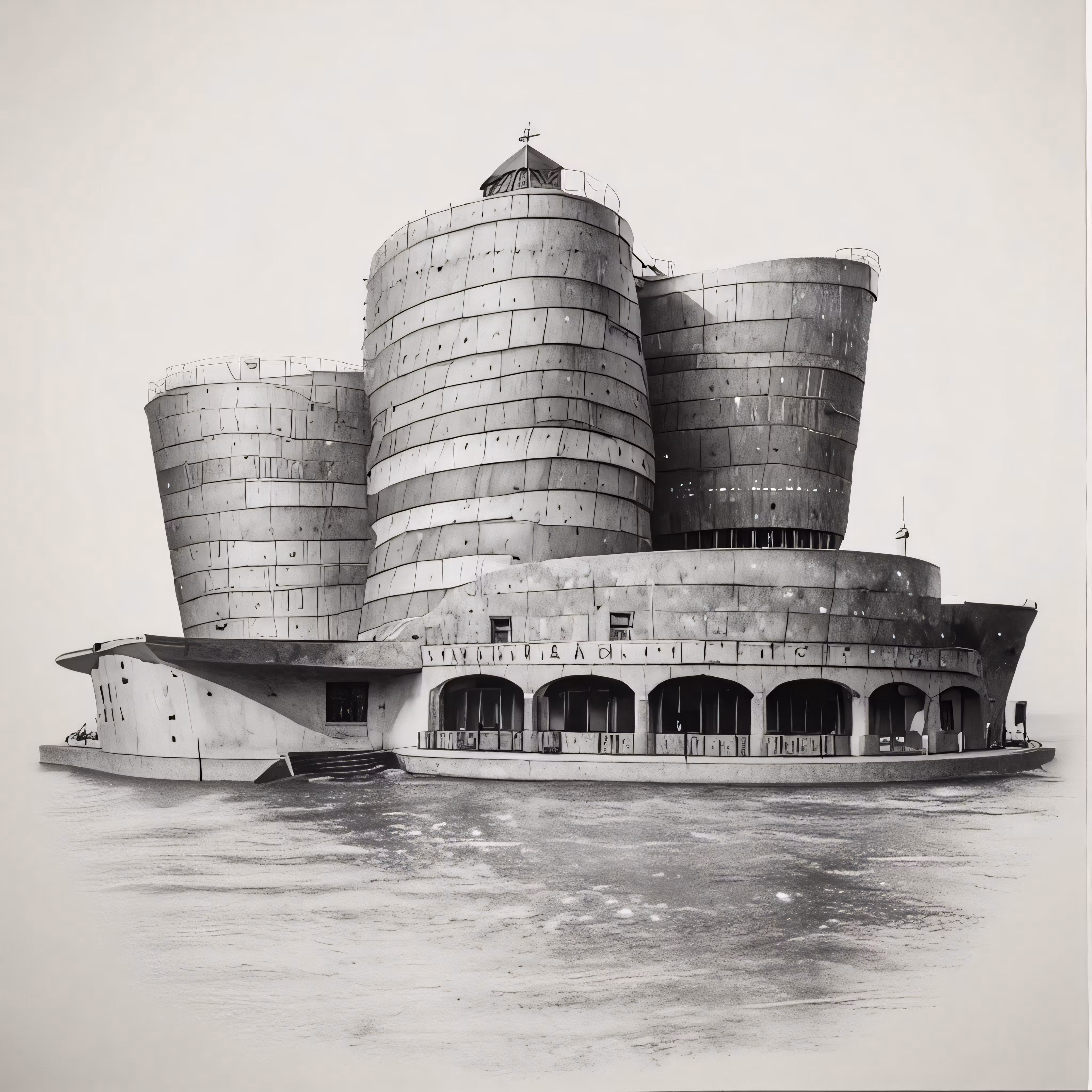 High resolution picture, free to use, a very large building in the middle of a body of water