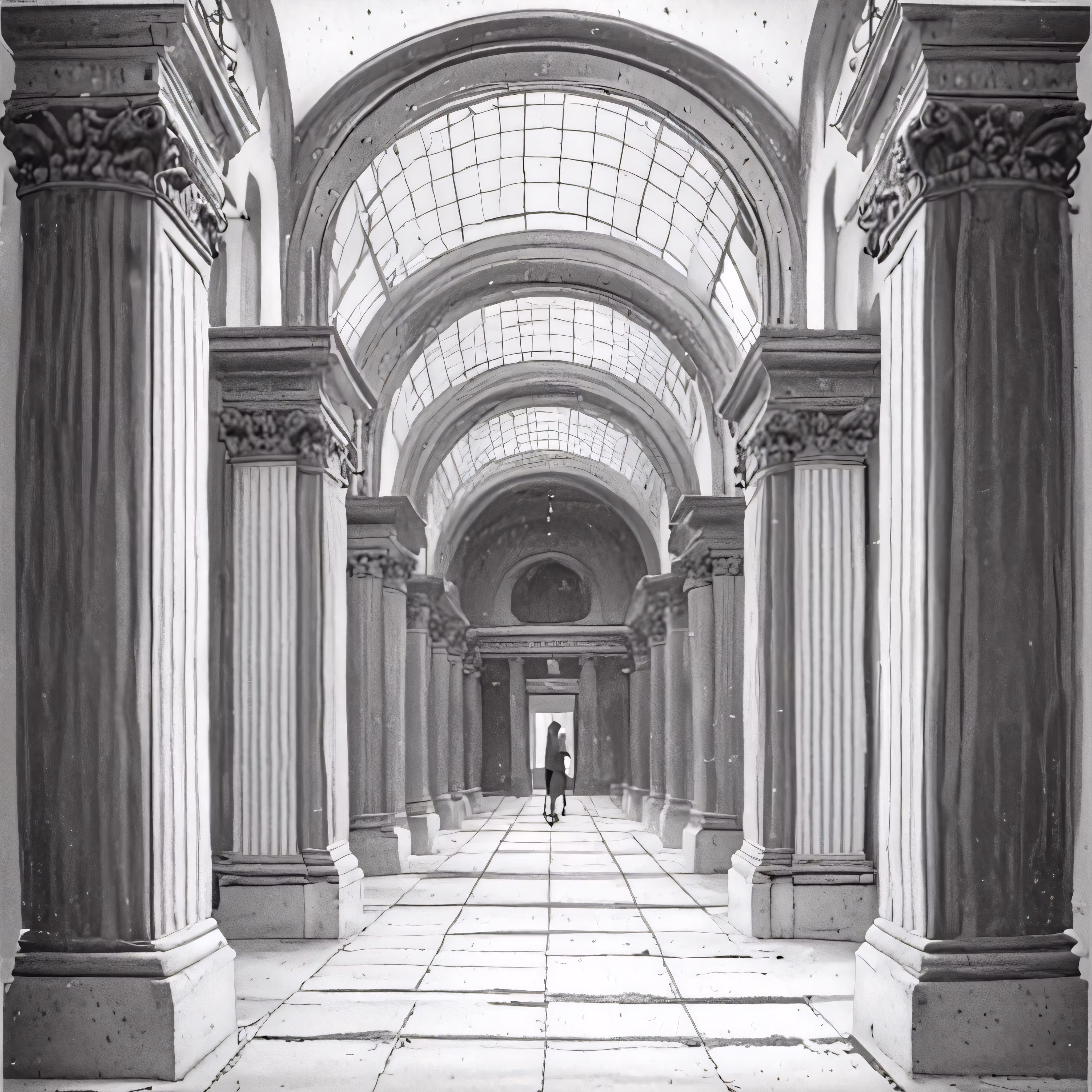 High resolution picture, free to use, a very large building with pillars in the middle of it