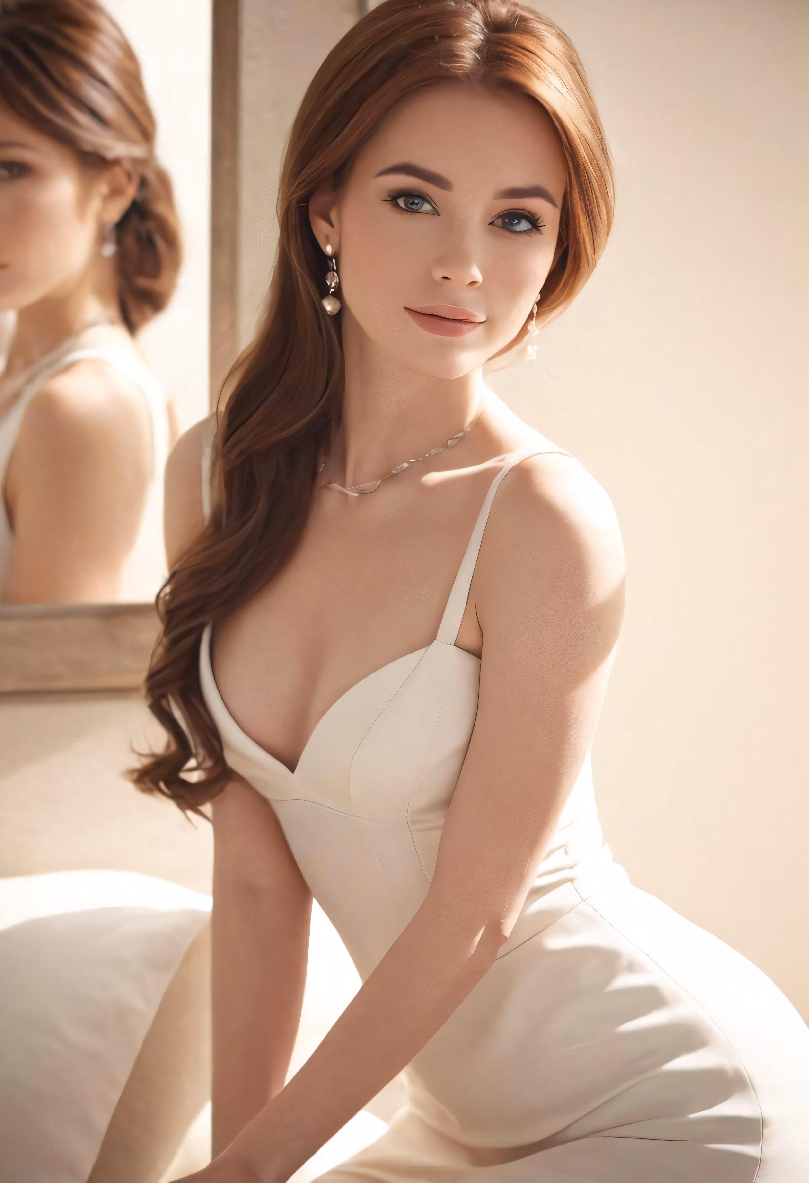 High resolution picture, free to use, a very pretty asian woman posing with her hands on her knees