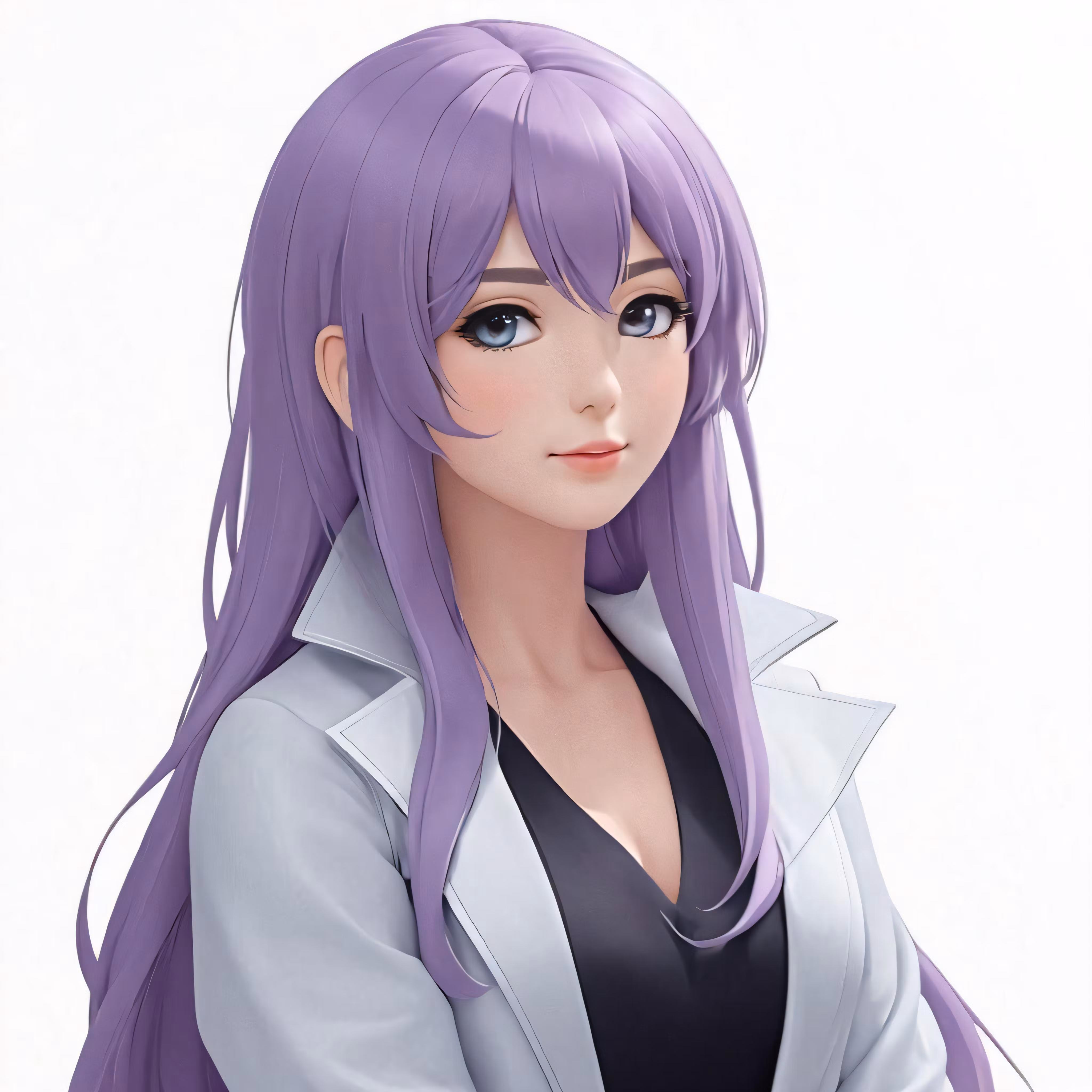 High resolution picture, free to use, a very pretty girl with purple hair in a suit