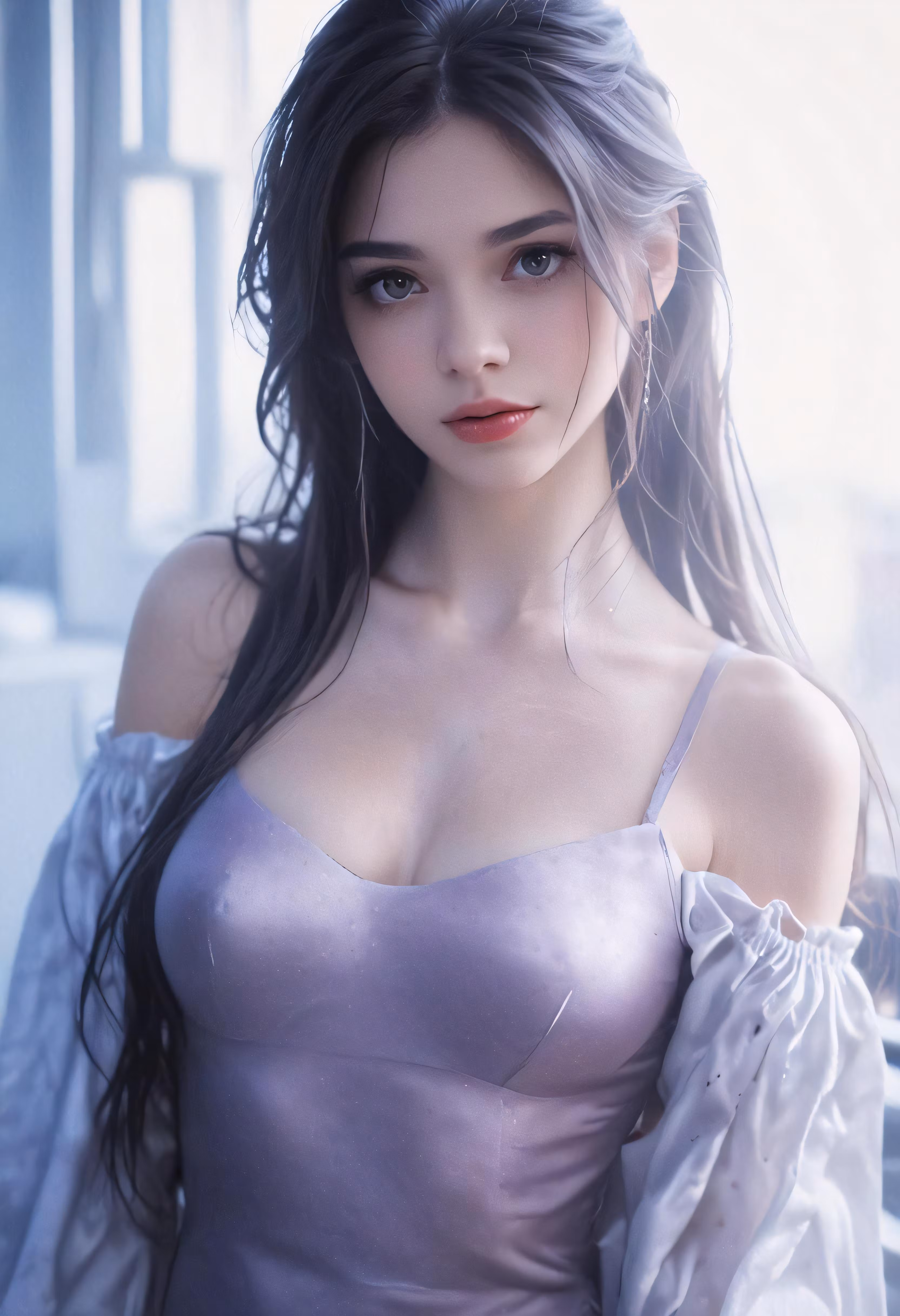 High resolution picture, free to use, a very sexy woman wearing a lila dress