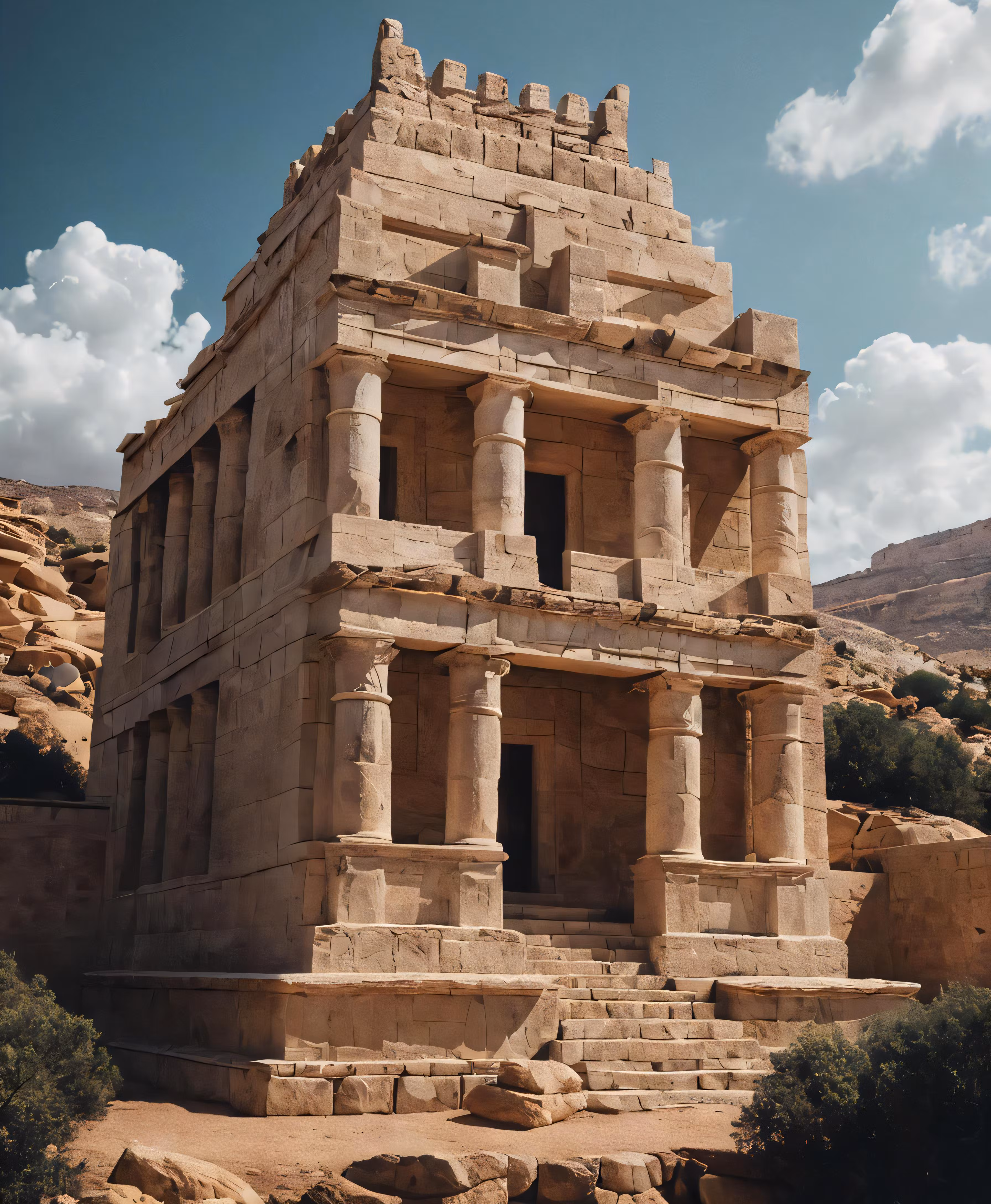 High resolution picture, free to use, a very tall structure with many pillars on it