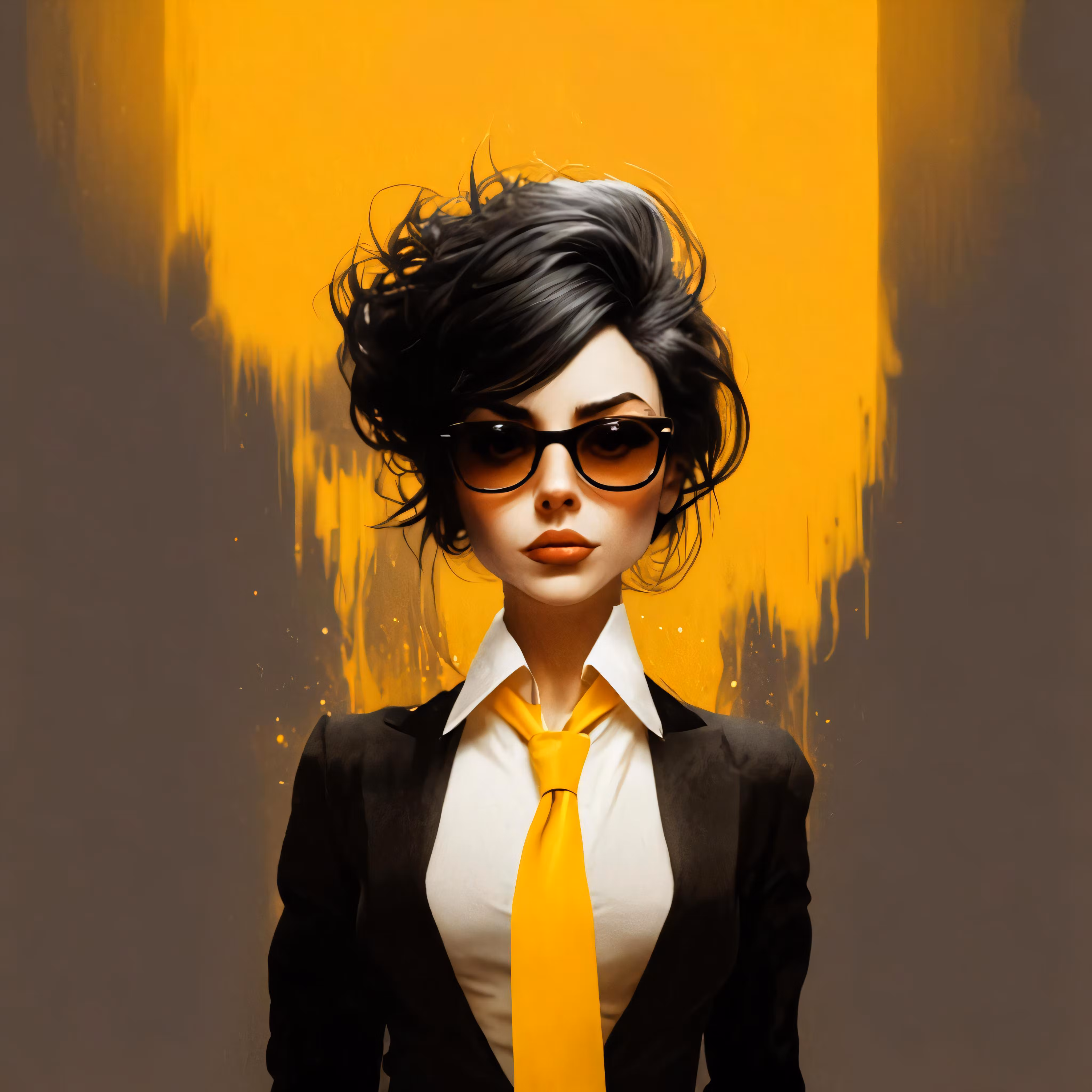 High resolution picture, free to use, a very unique digital painting with a woman dressed as a suit and tie