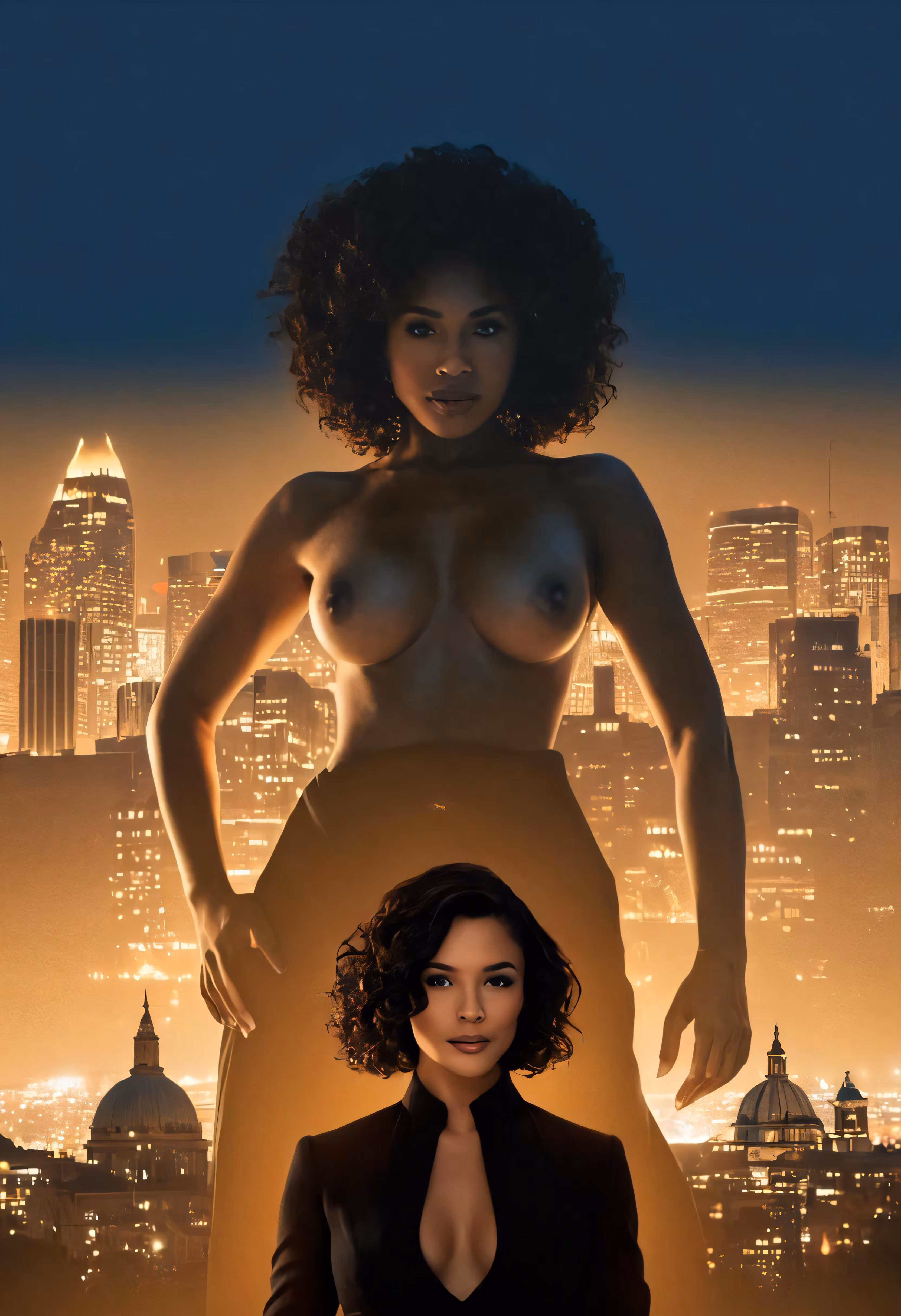 High resolution picture, free to use, a very young woman standing in front of a large city