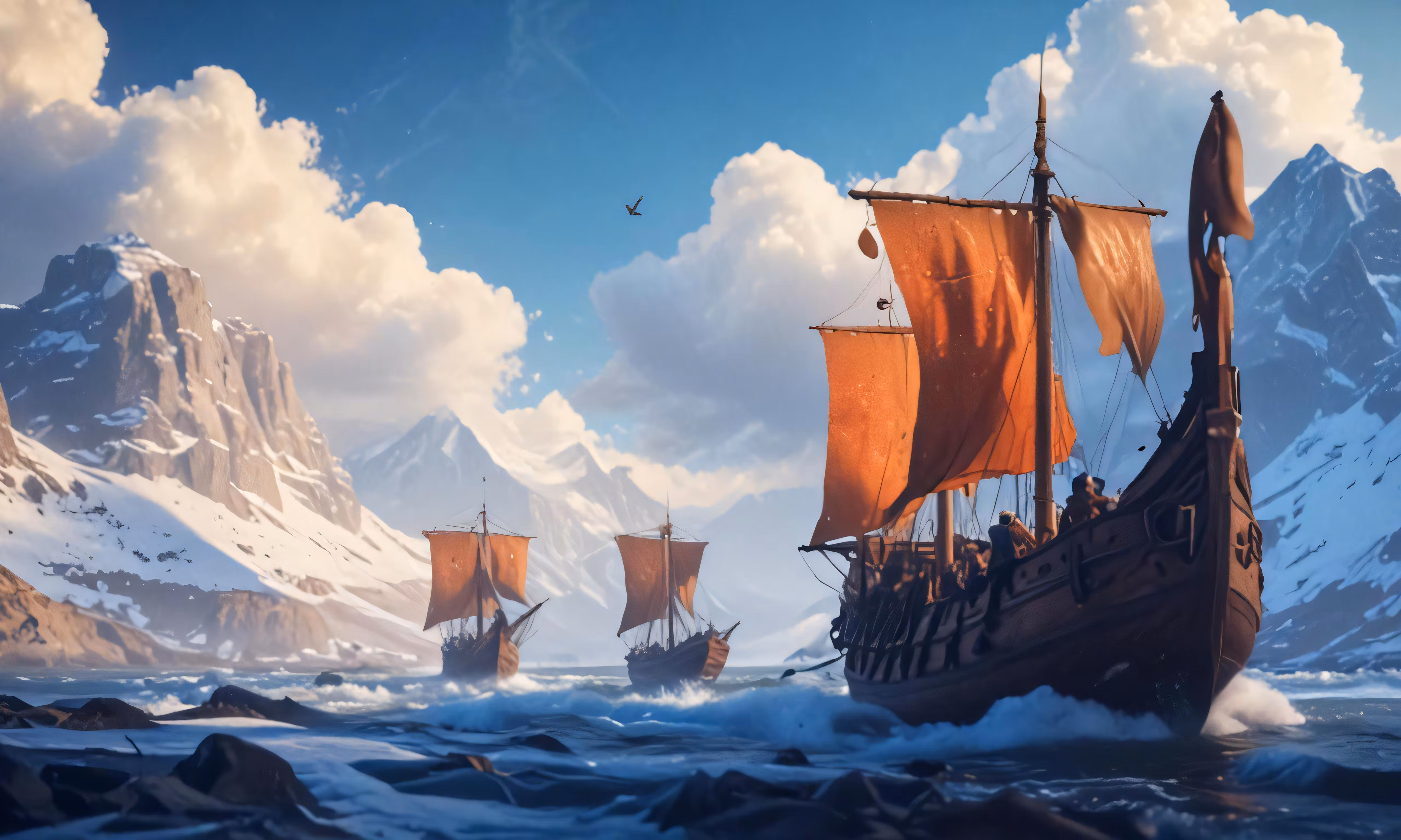 High resolution picture, free to use, a video game scene of three ships engaging in the ocean