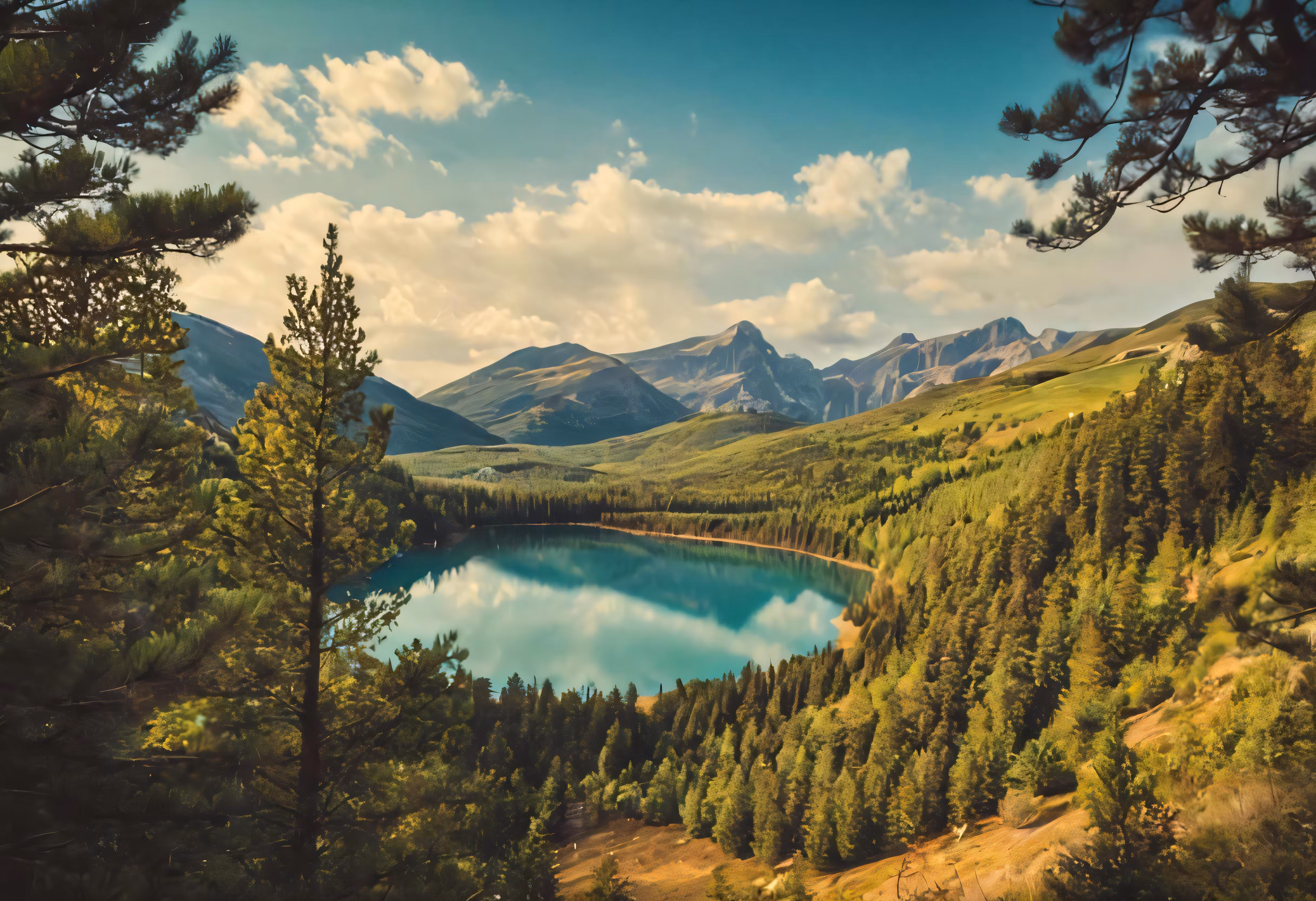 High resolution picture, free to use, a view of a lake with a mountain range in the background