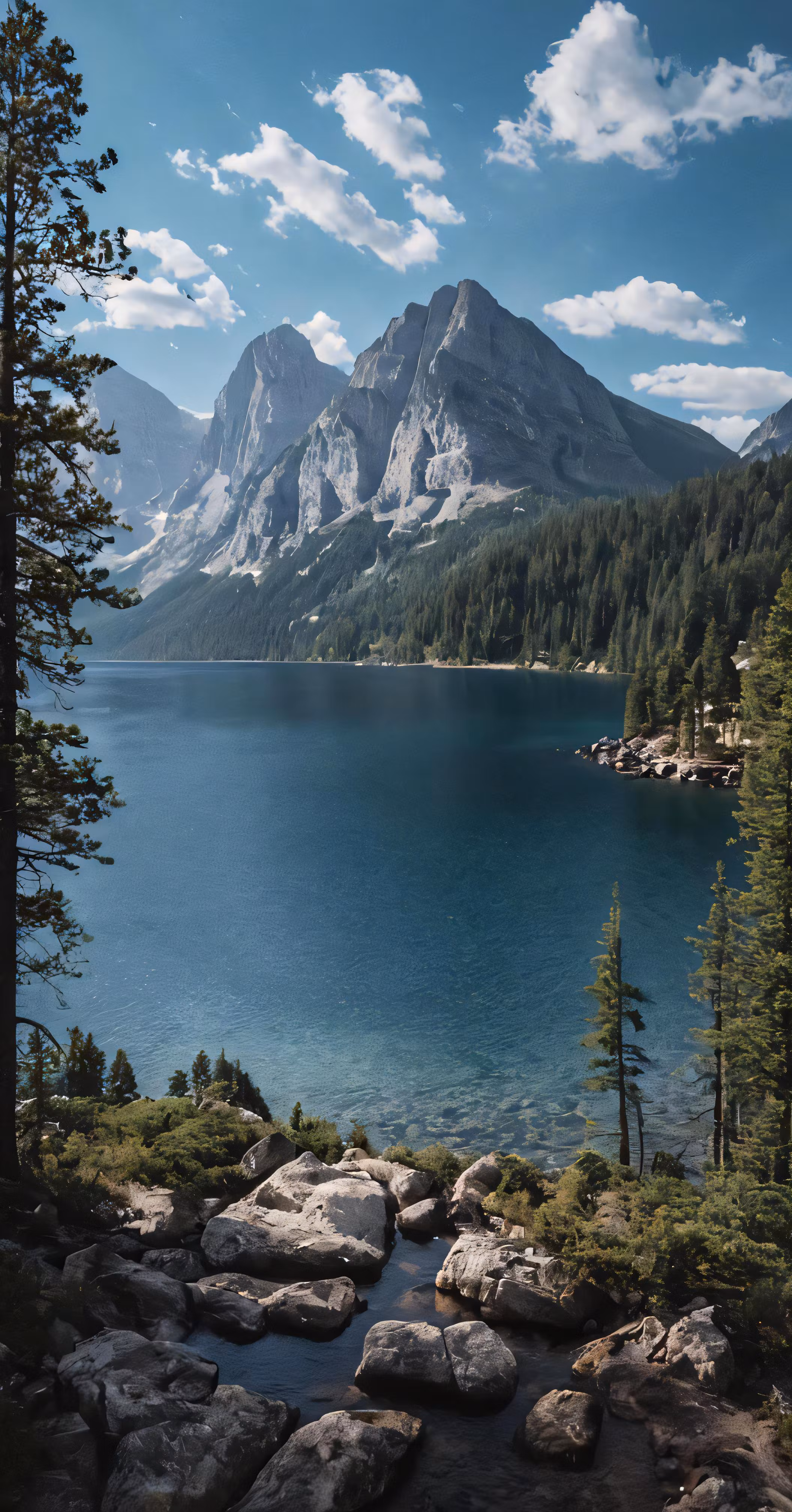 High resolution picture, free to use, a view of a rocky lake in the mountains