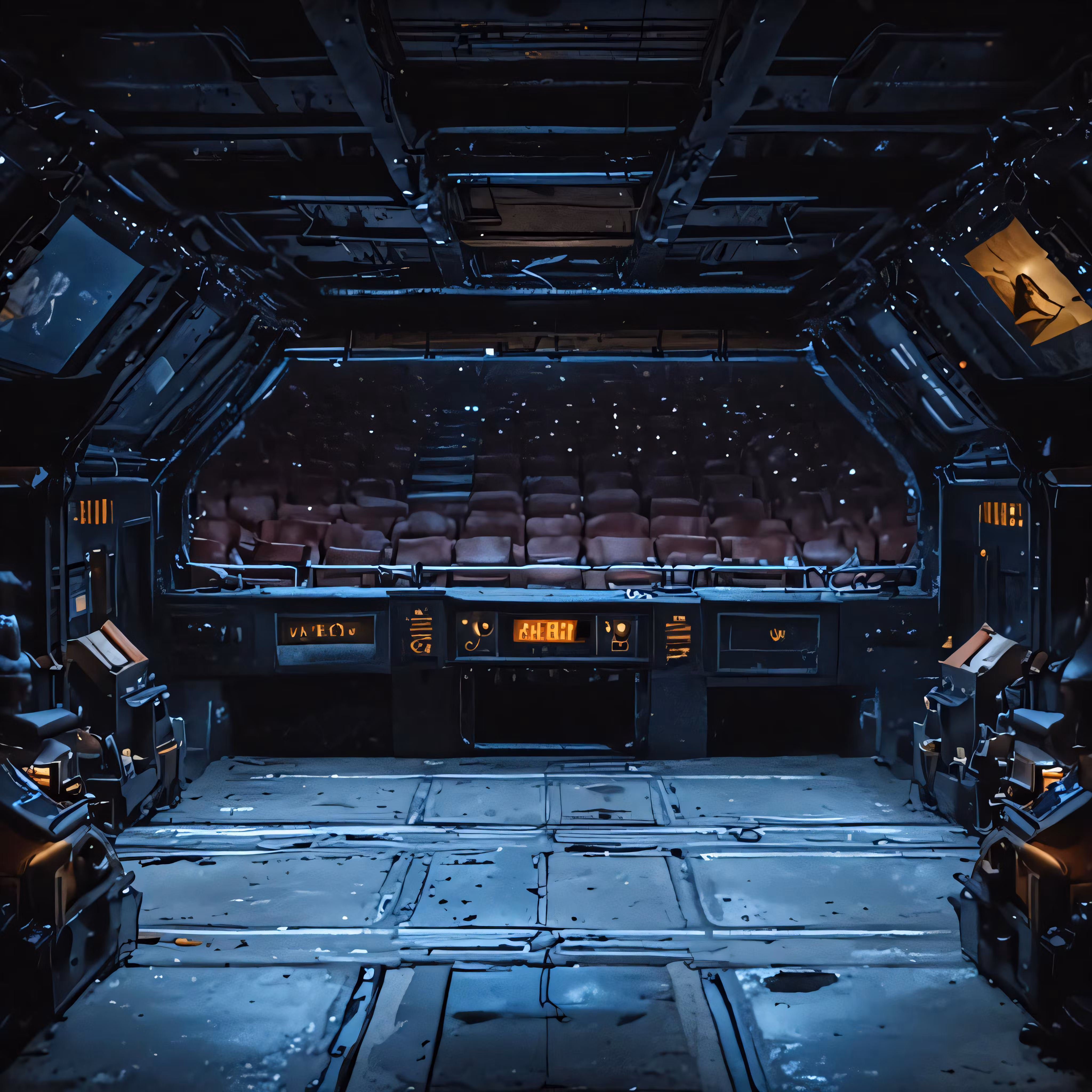 High resolution picture, free to use, a view of a theatre with seats and neon lights