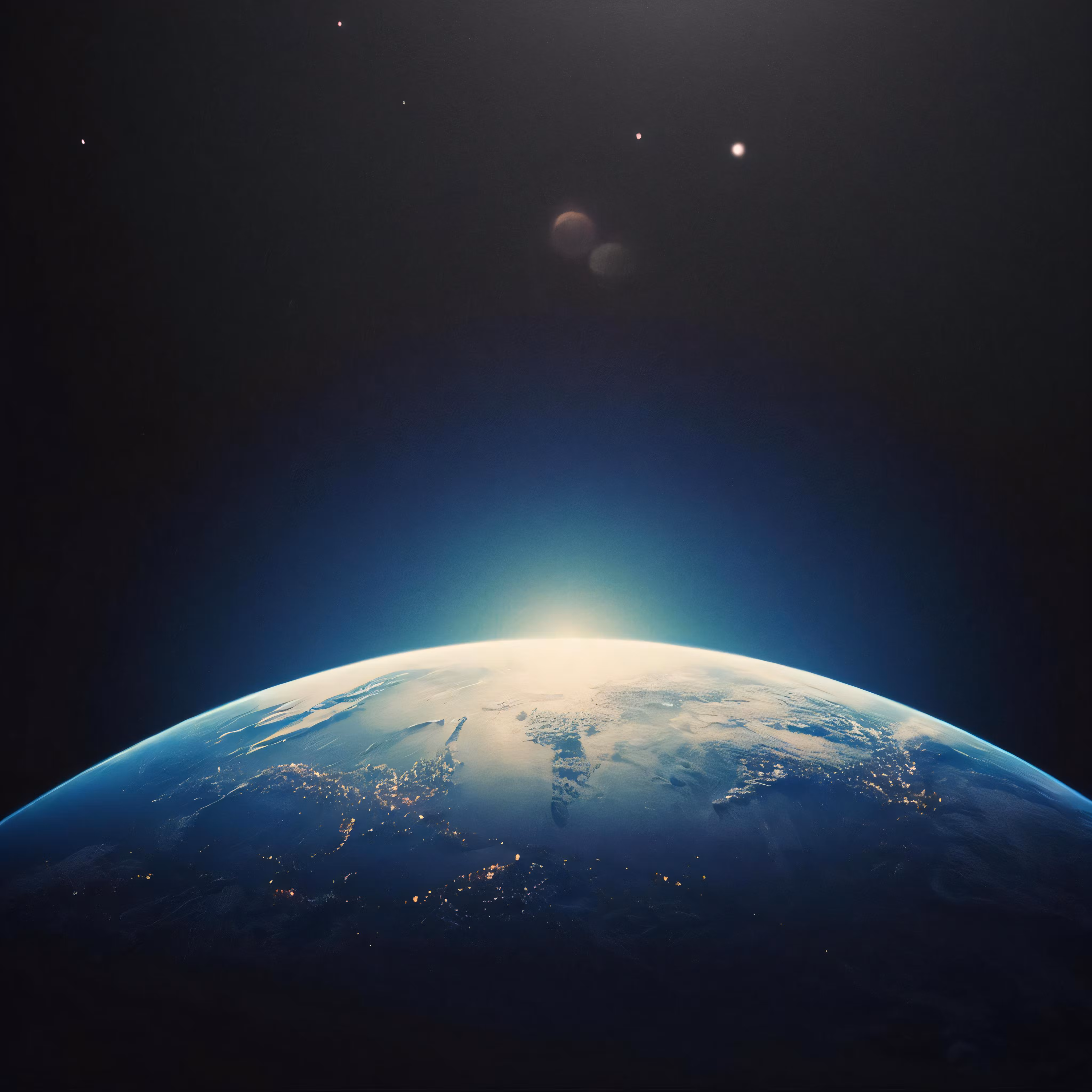 High resolution picture, free to use, a view of the earth from space with some lights on