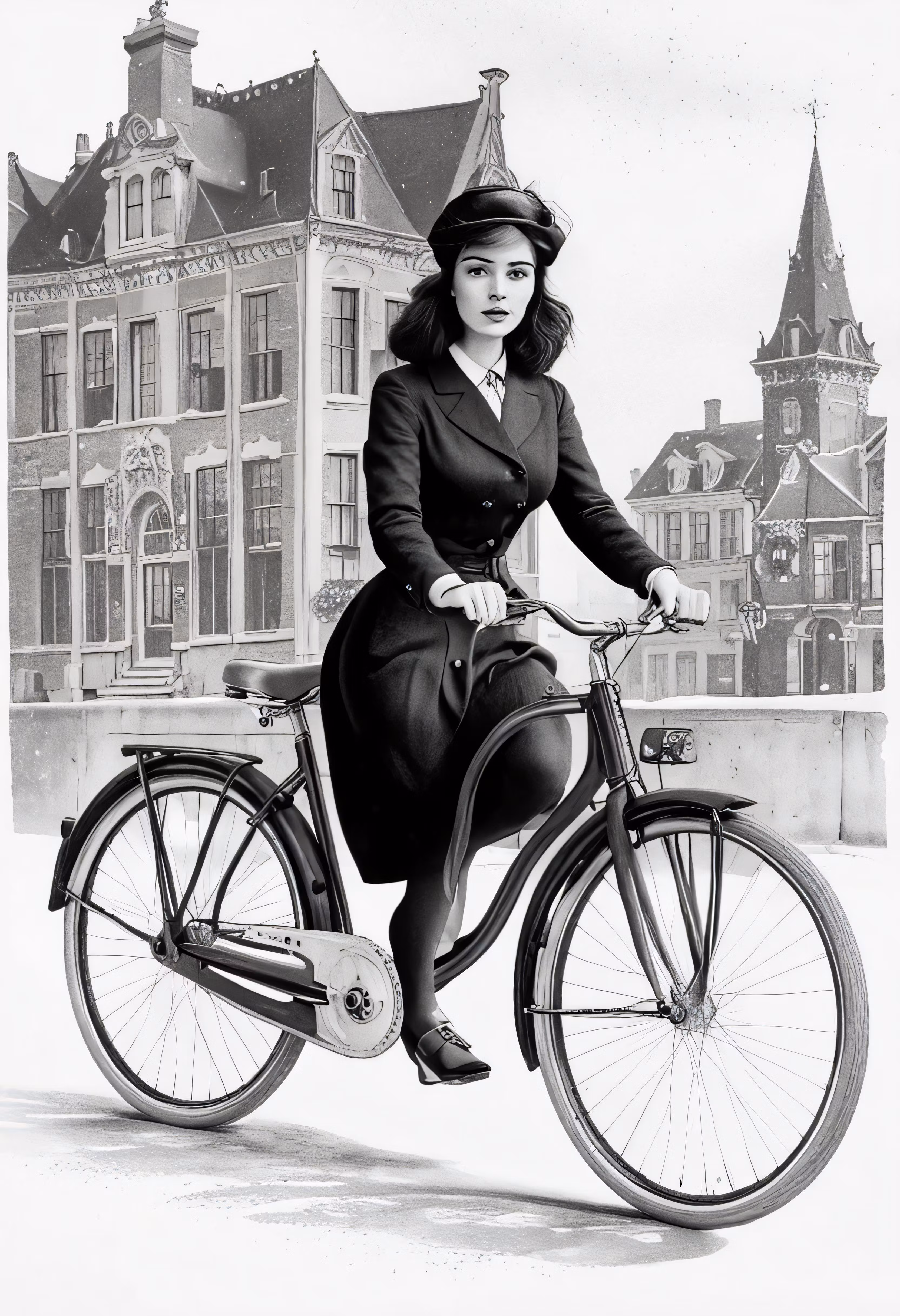 High resolution picture, free to use, a vintage picture of a woman riding her bicycle