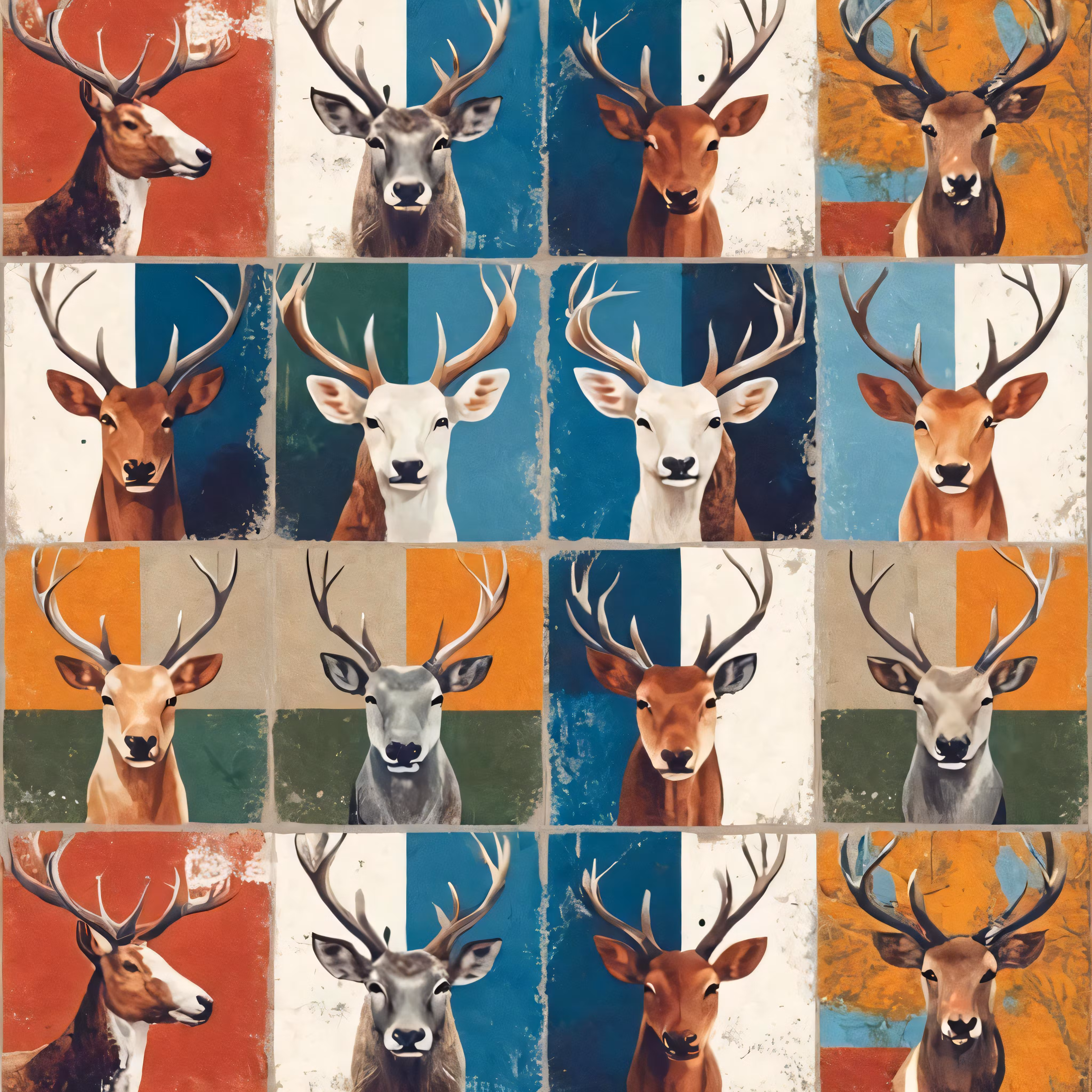 High resolution picture, free to use, a wall mural depicting four different deer heads