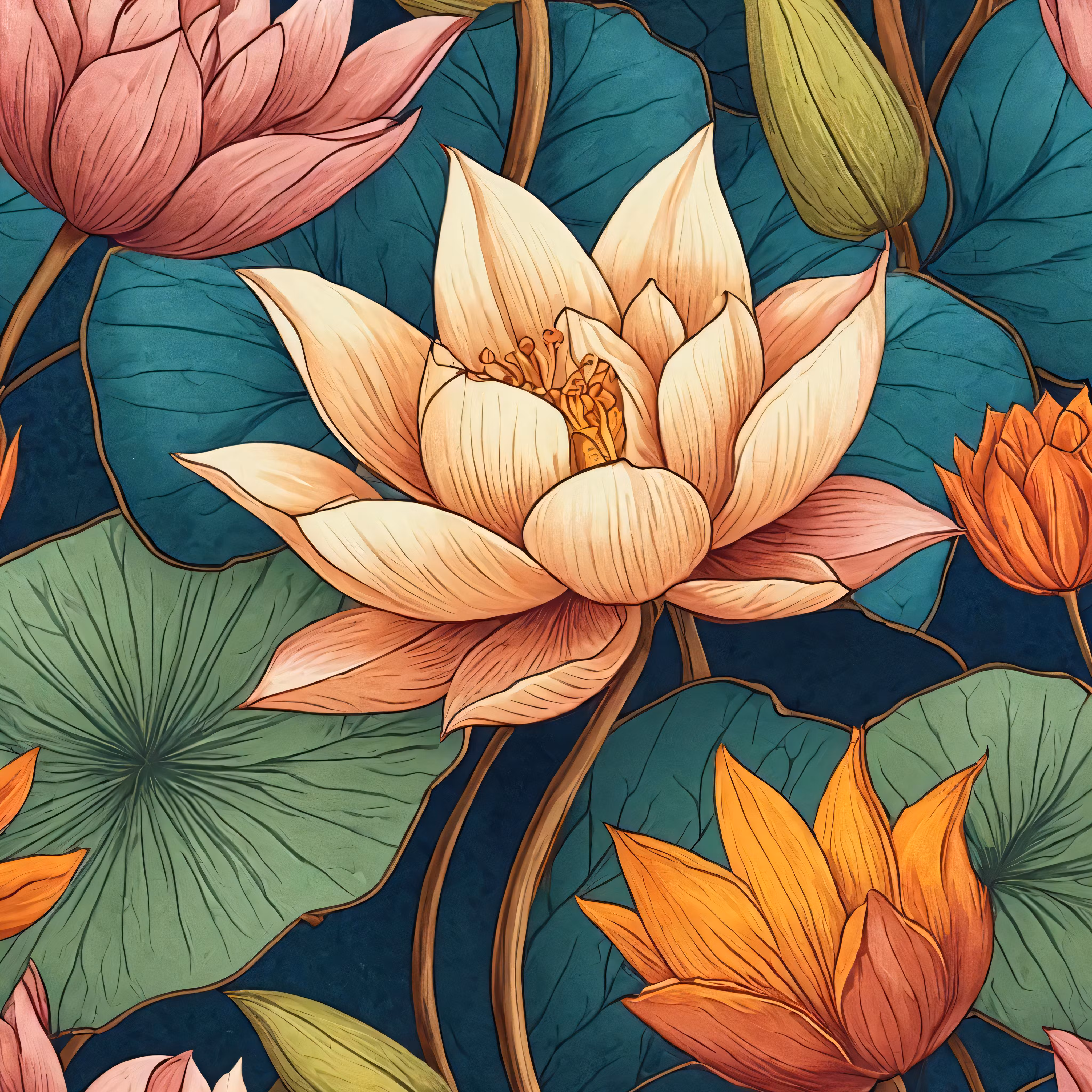 High resolution picture, free to use, a water lily painted on the front of a blue and green surface