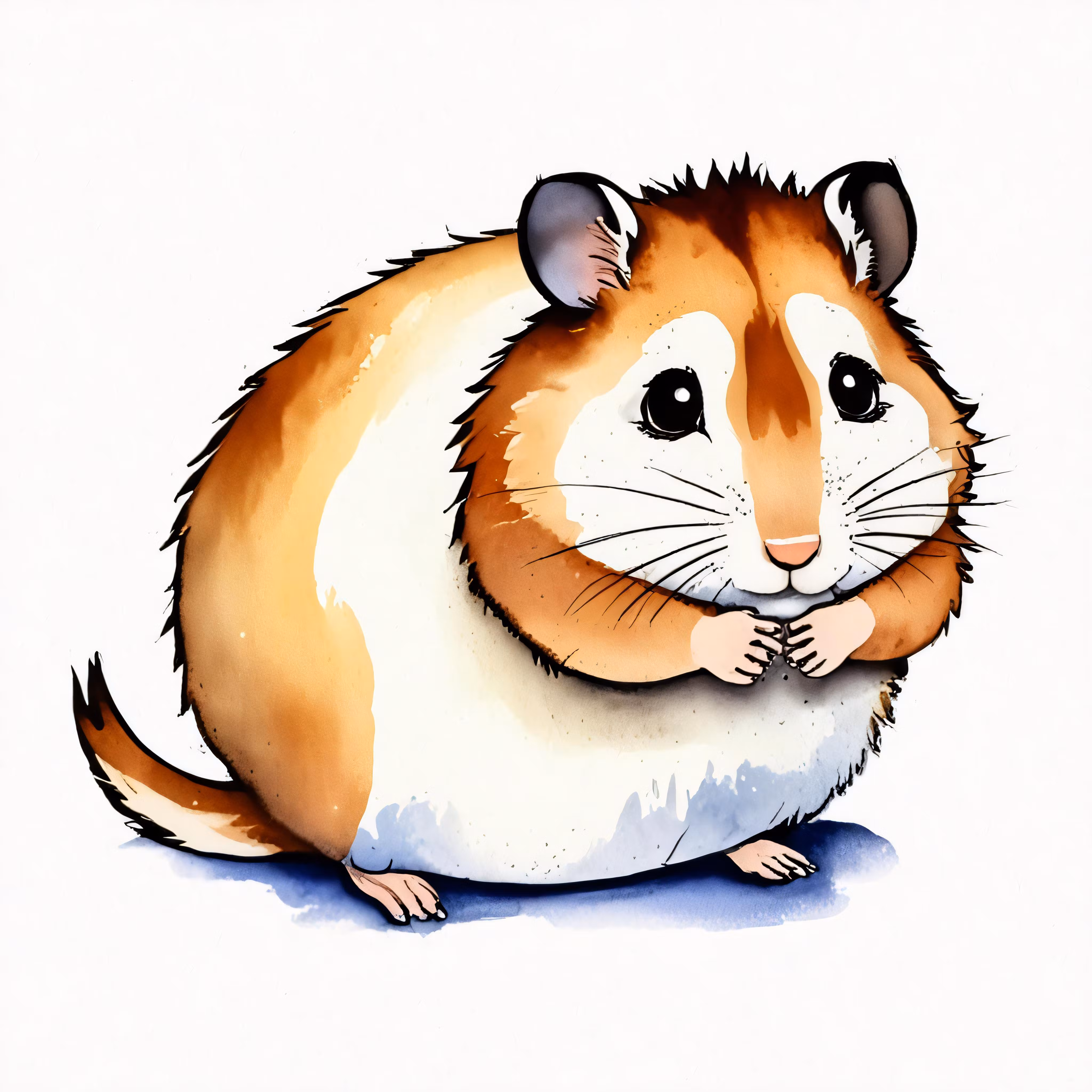 High resolution picture, free to use, a watercolor drawing of an adorable hamster