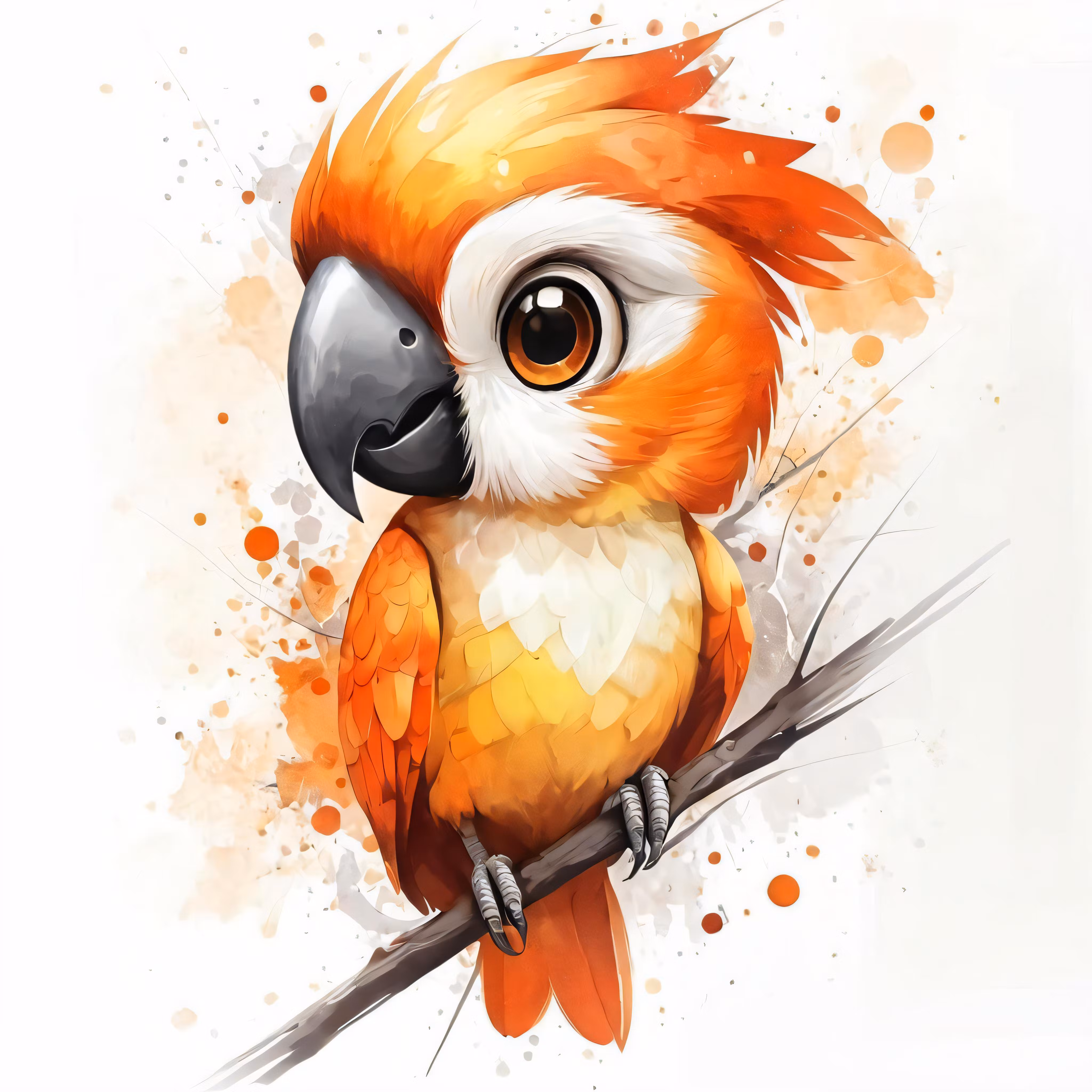 High resolution picture, free to use, a watercolor painting of a macaw perched on a branch