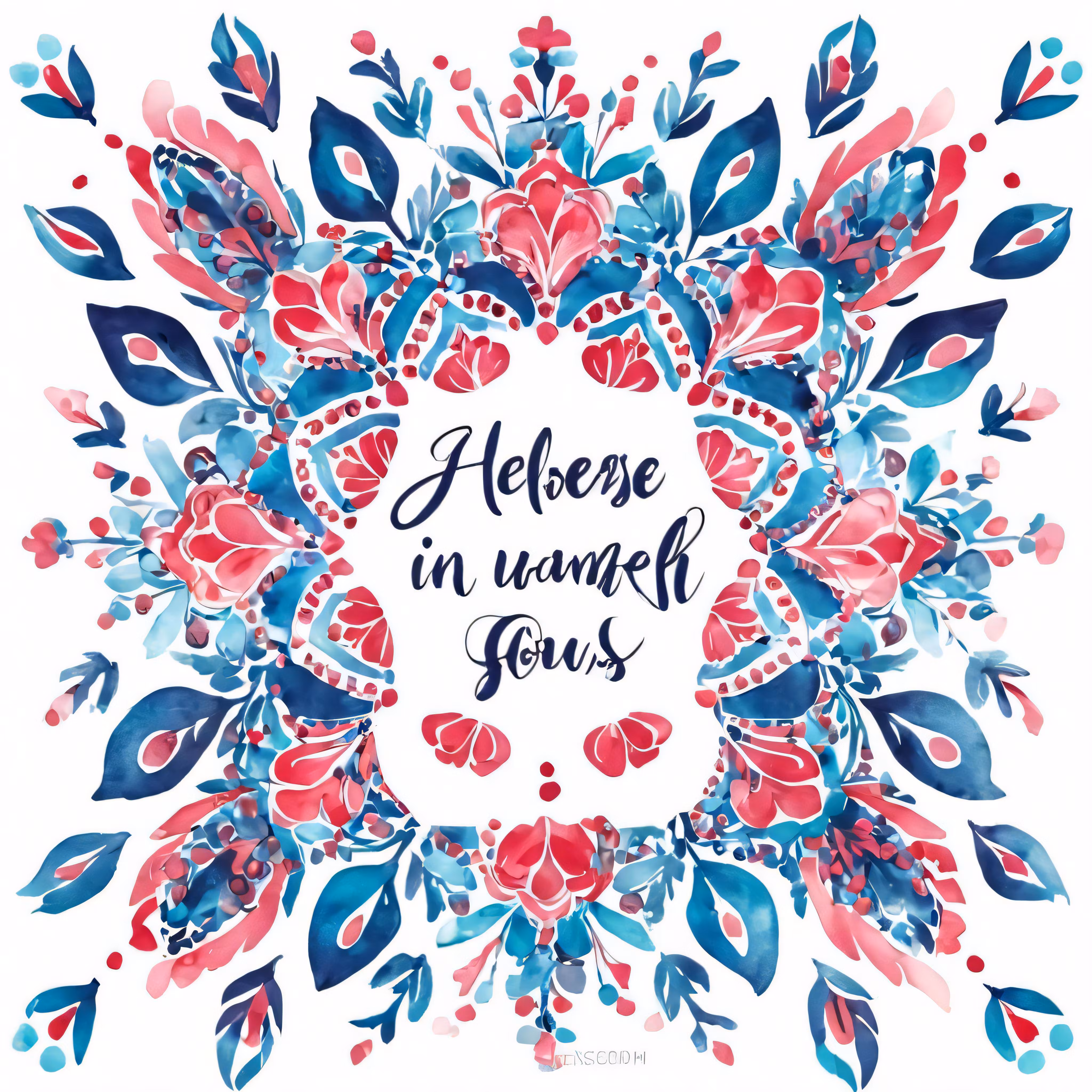 High resolution picture, free to use, a watercolor painting with a handwritten phrase in the center and flowers on it