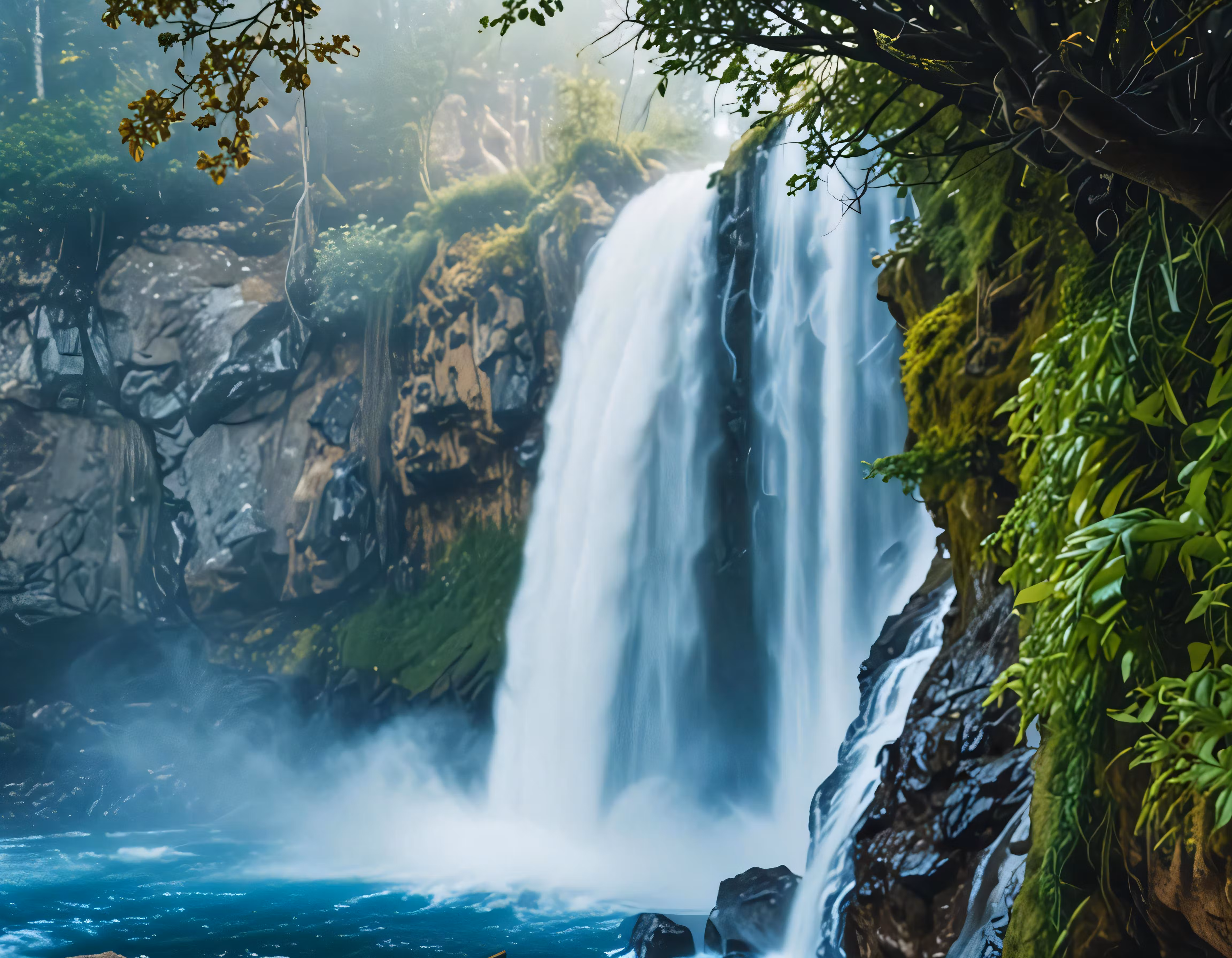 High resolution picture, free to use, a waterfall in the woods and water