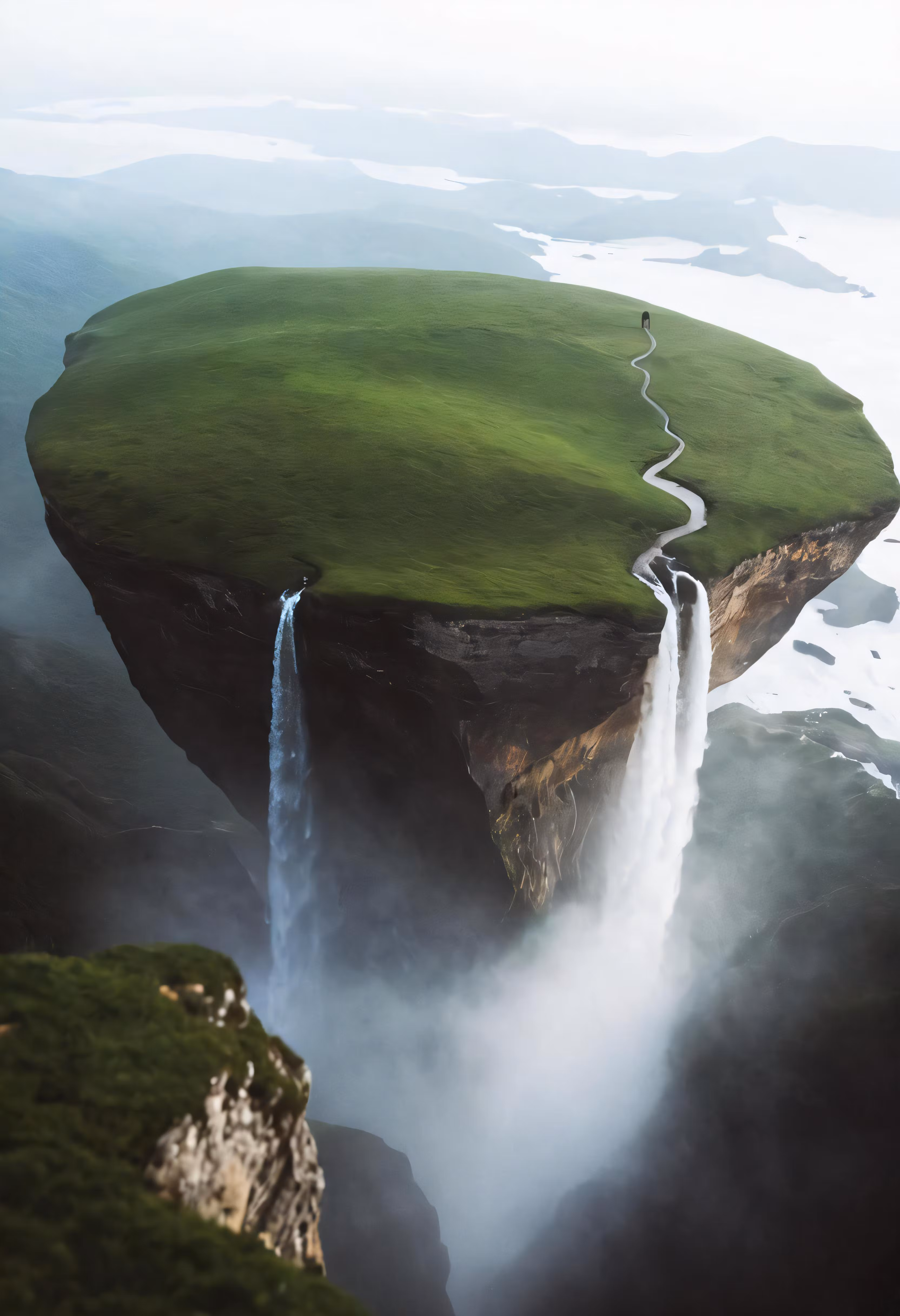 High resolution picture, free to use, a waterfall with an artificial walkway crossing over it