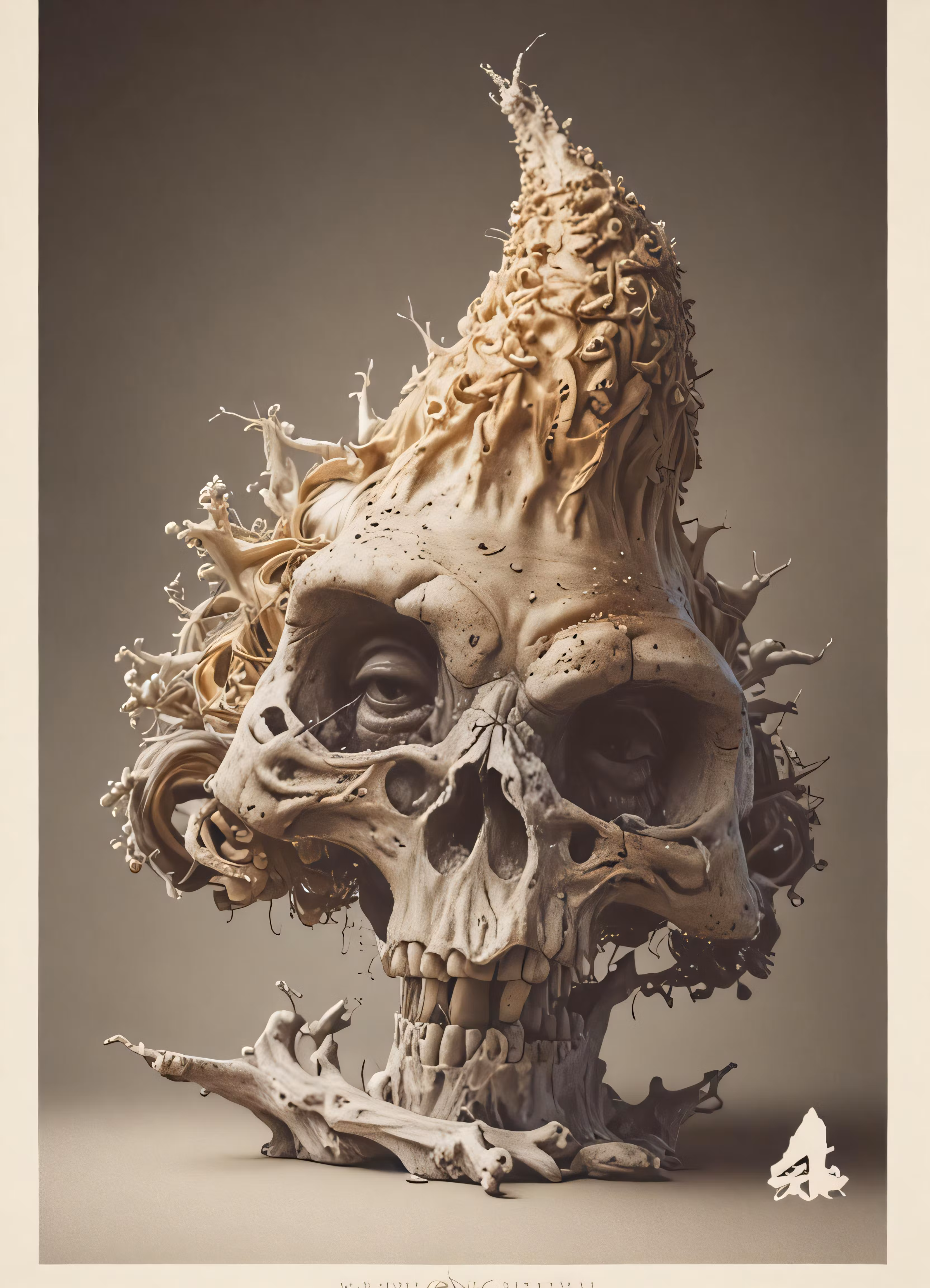 High resolution picture, free to use, a weird looking skull with a crown on it