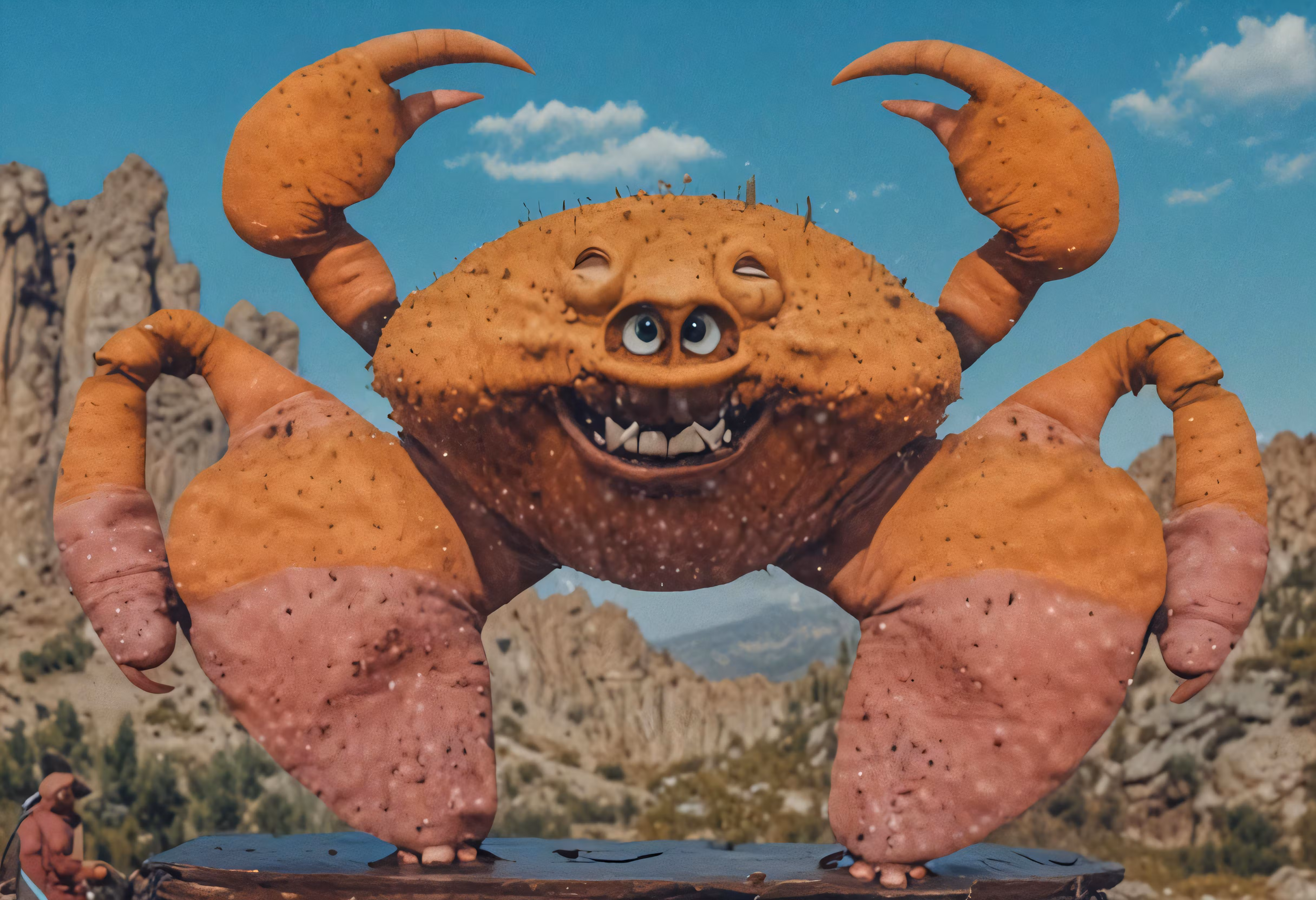 High resolution picture, free to use, a weird monster standing behind a car in the desert