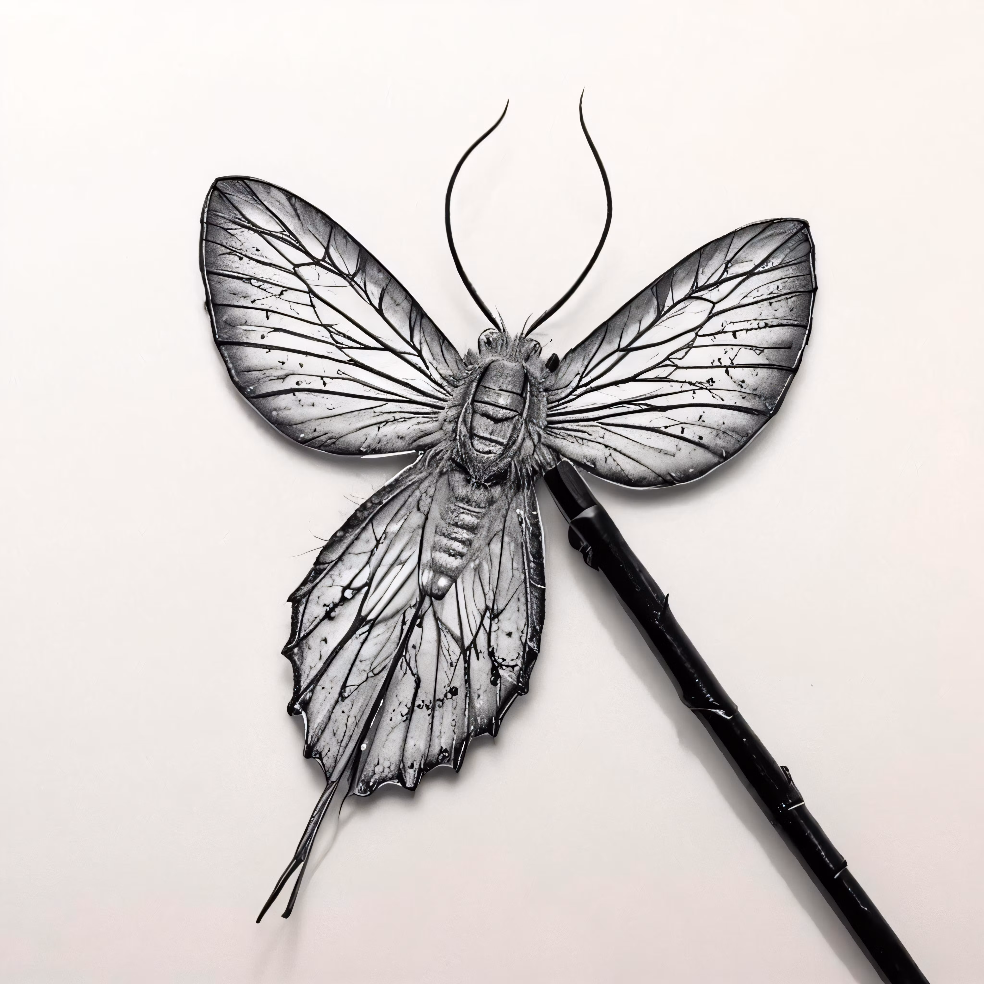 High resolution picture, free to use, a white and black insect sitting next to a pen