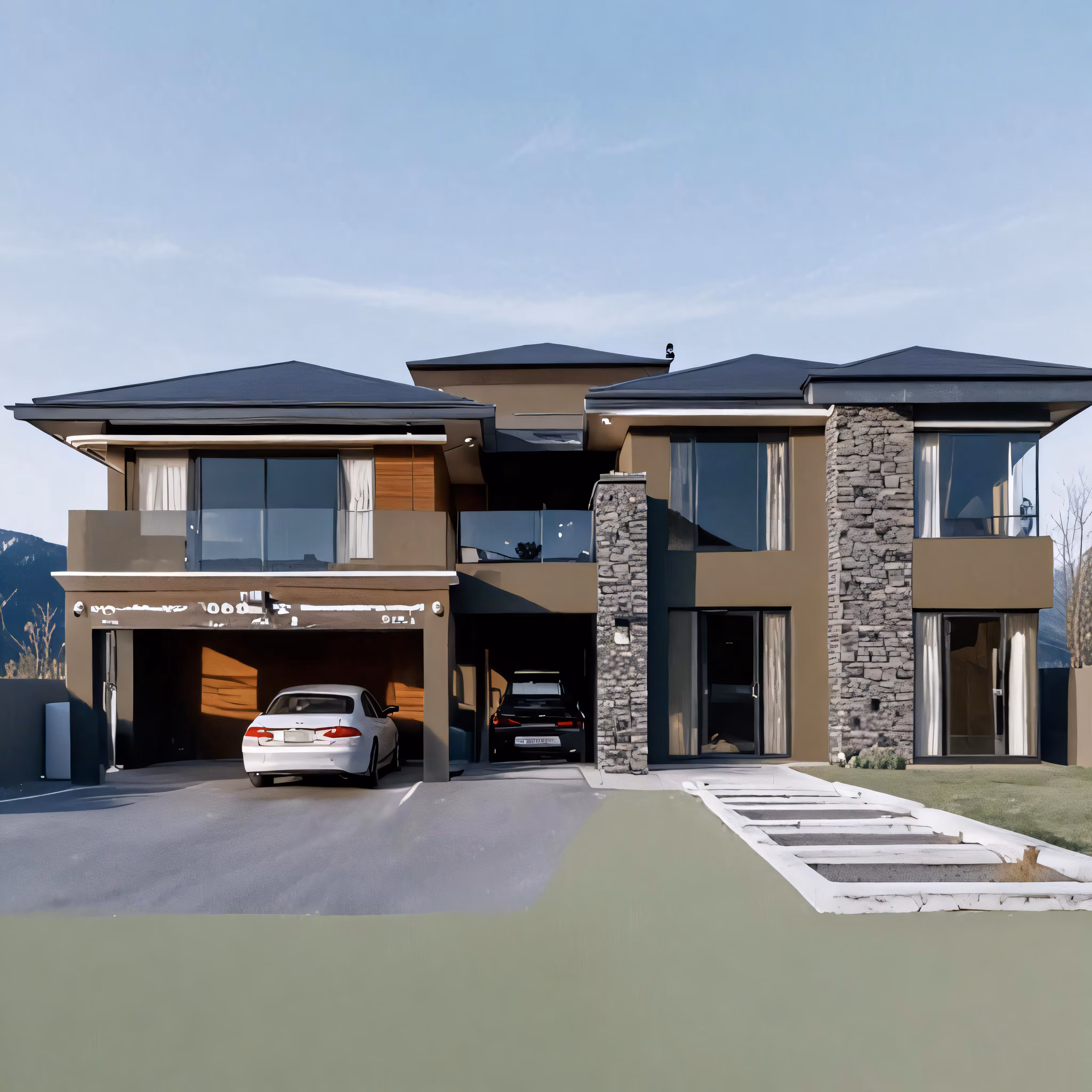 High resolution picture, free to use, a white car is parked in front of a modern house