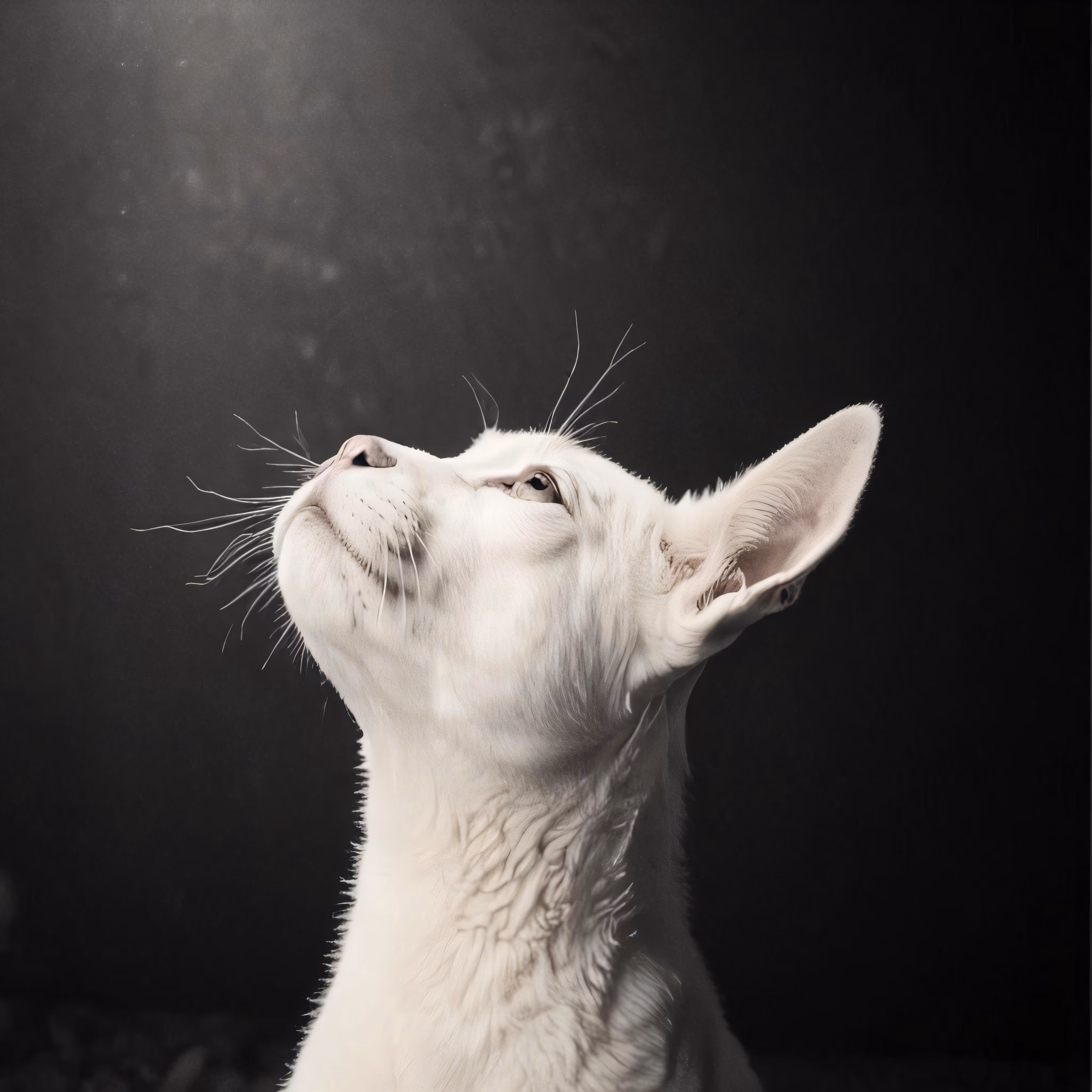 High resolution picture, free to use, a white cat is reaching up and looking up