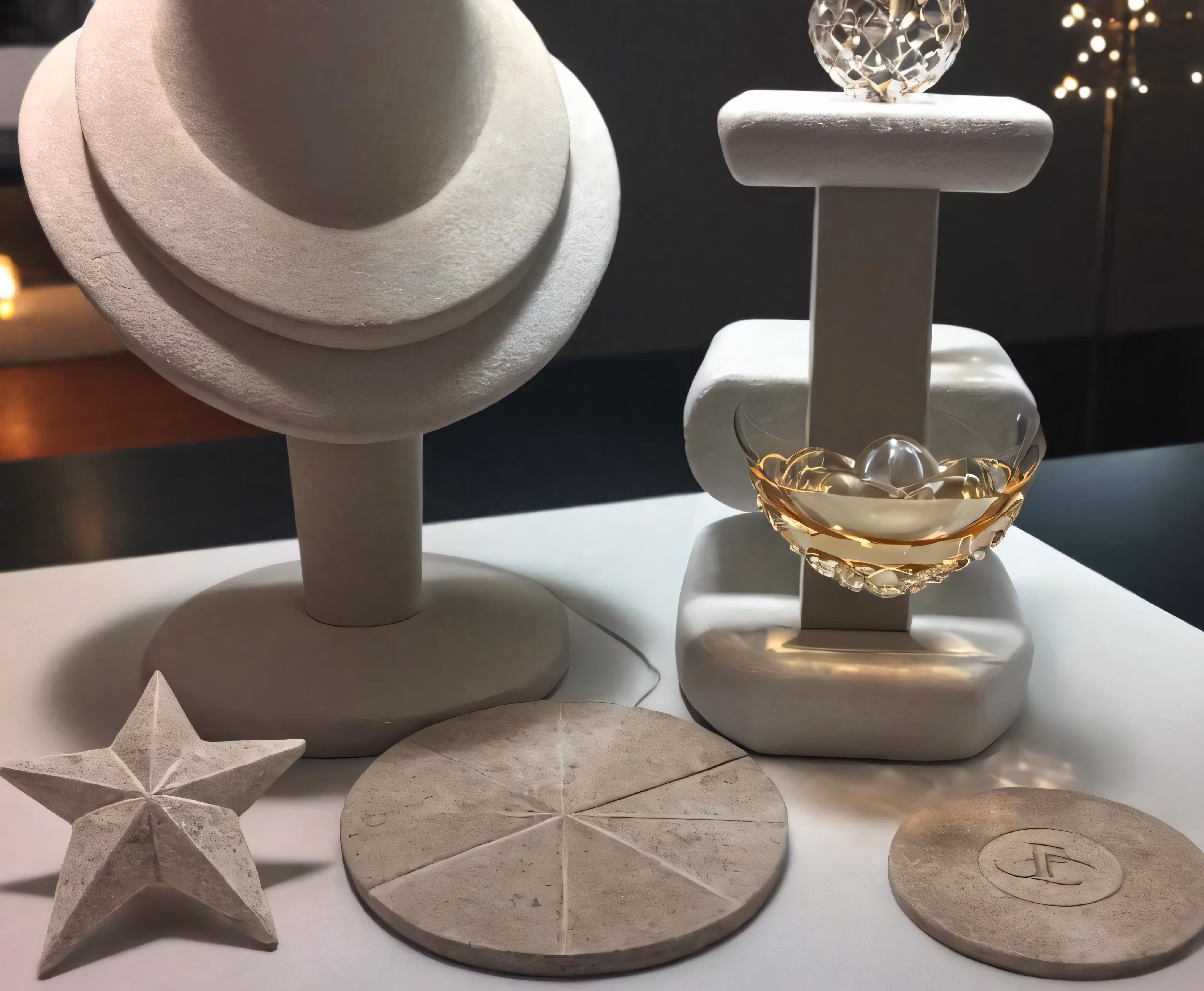 High resolution picture, free to use, a white display with some items on top