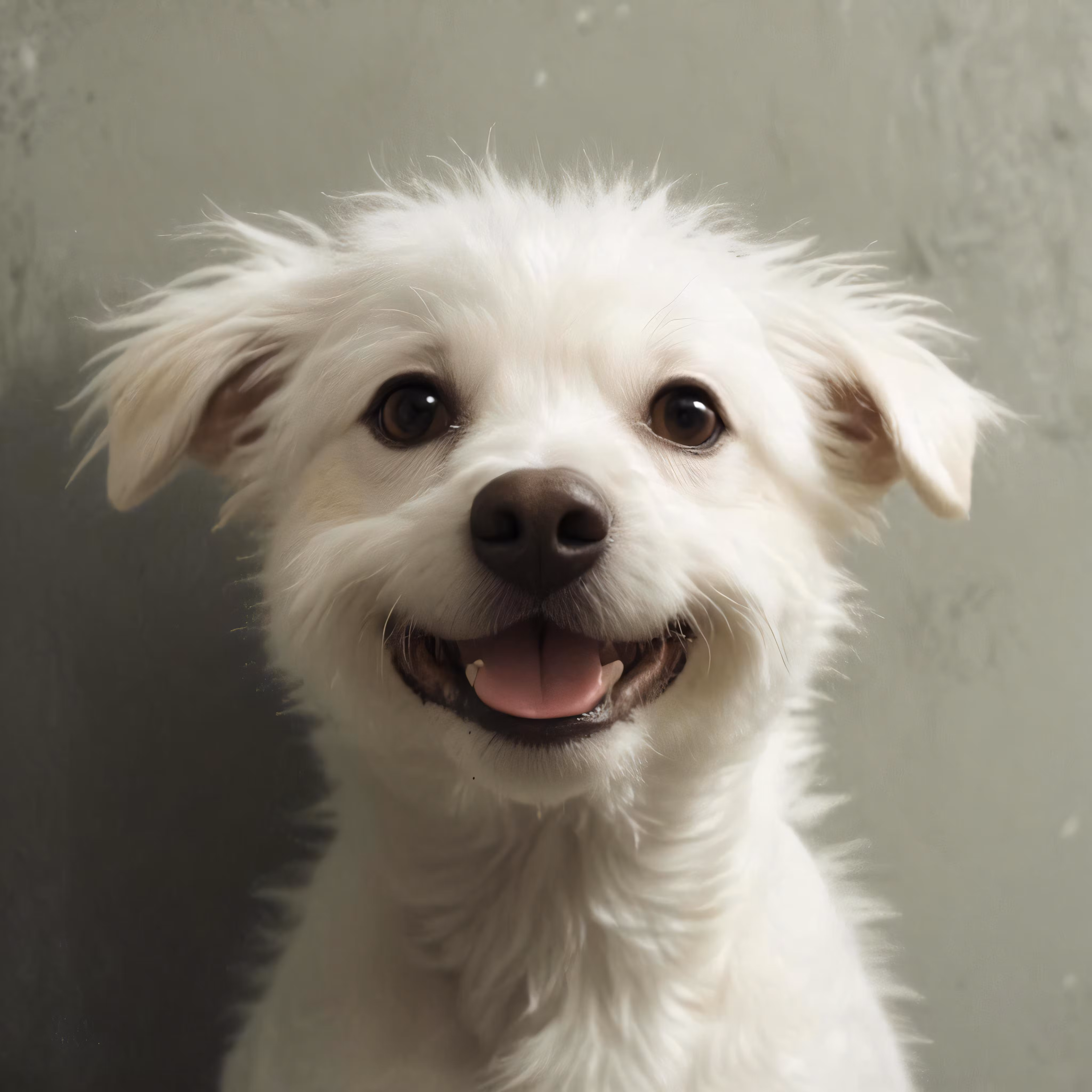 High resolution picture, free to use, a white dog with shaggy hair smiles for the camera