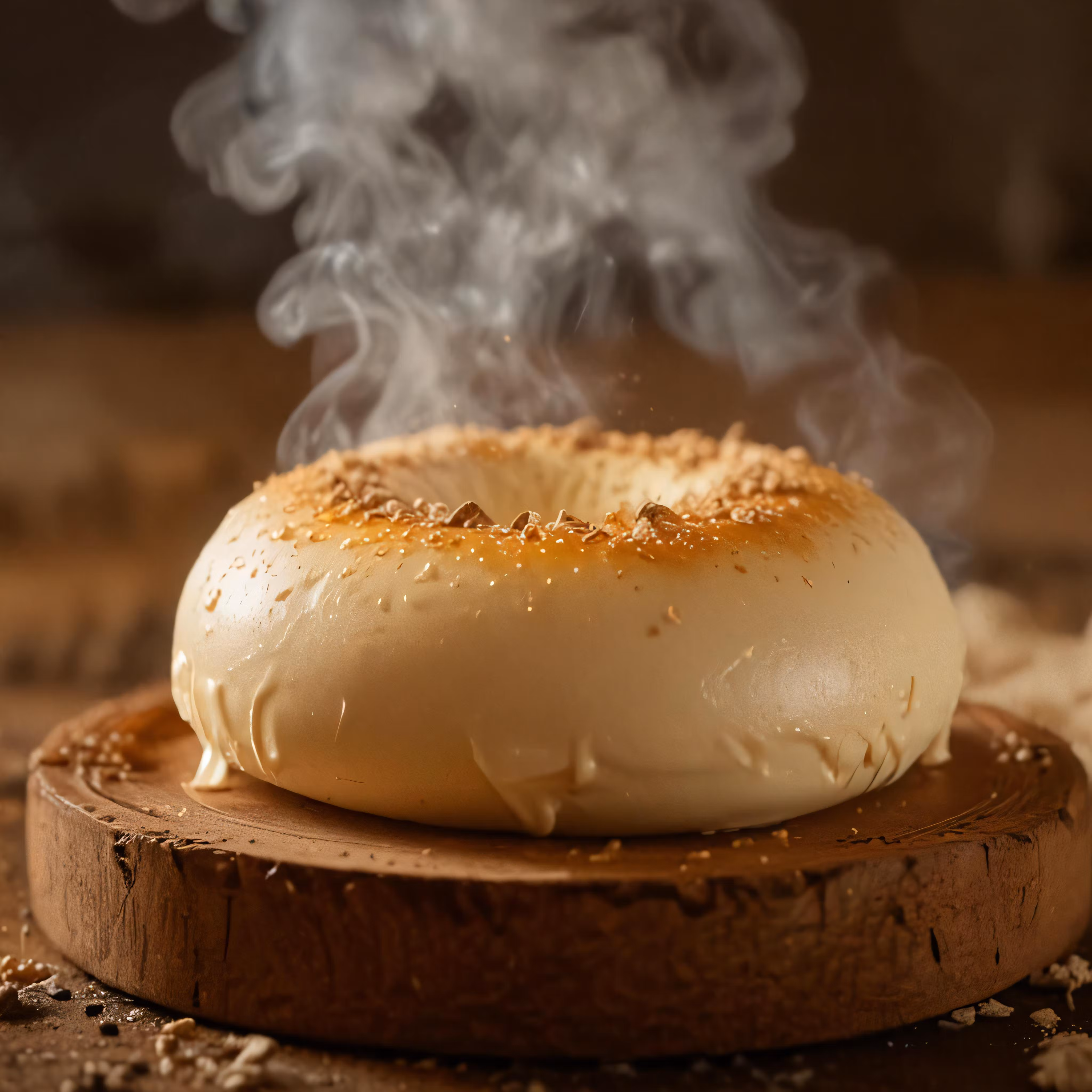High resolution picture, free to use, a white doughnut that has been cooked on top of a wooden surface