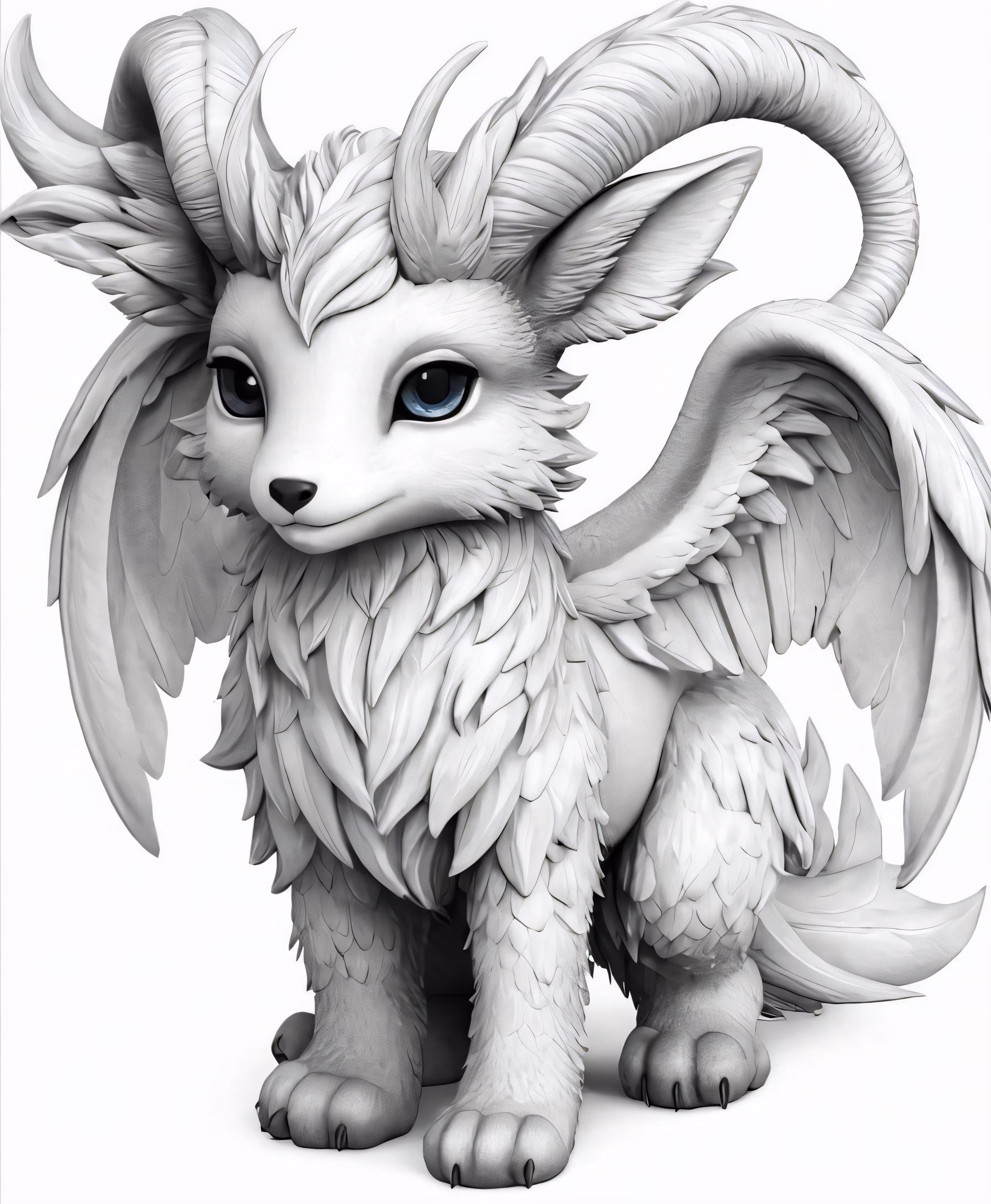 High resolution picture, free to use, a white dragon that is looking like a demon