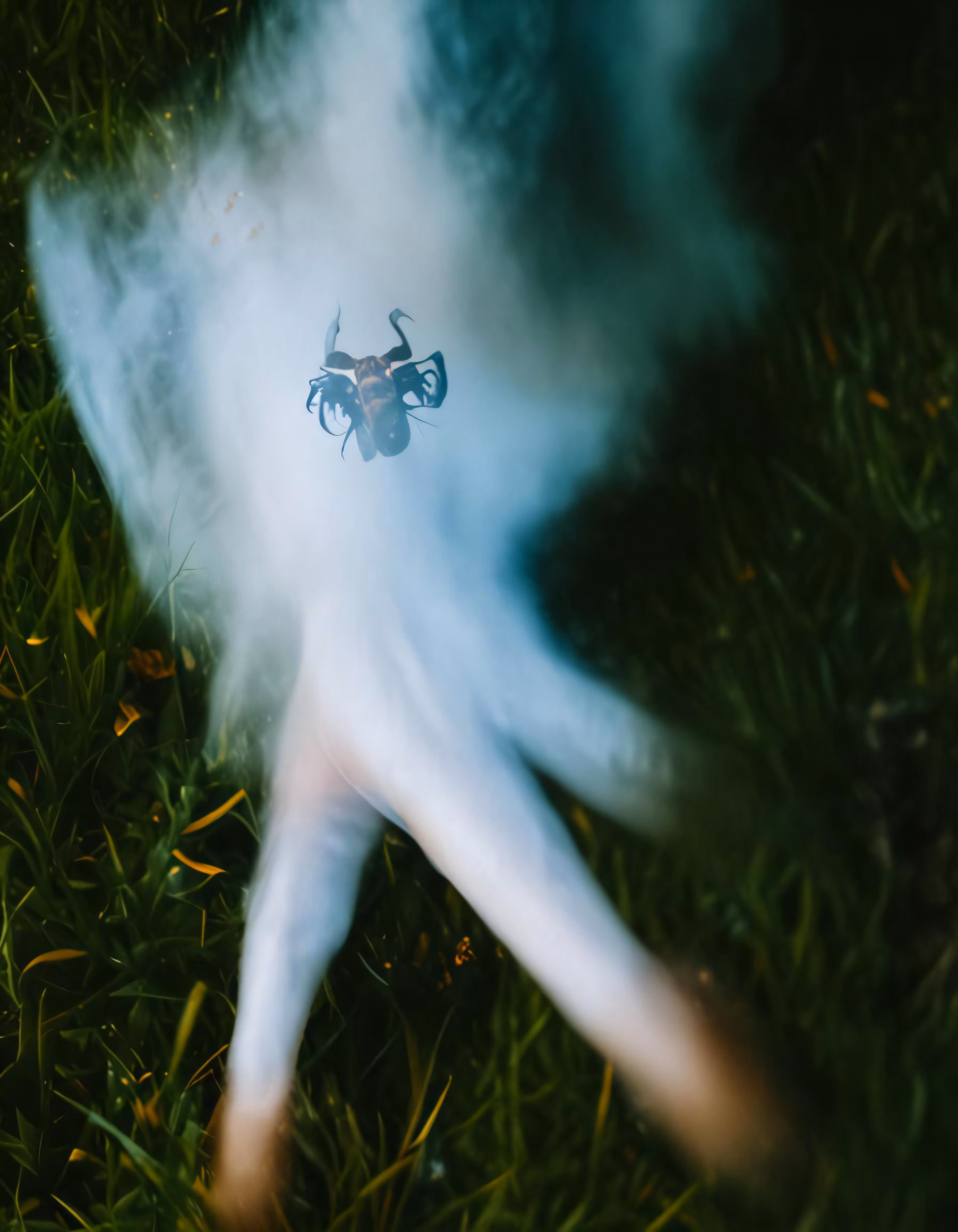 High resolution picture, free to use, a white flying object on some green grass