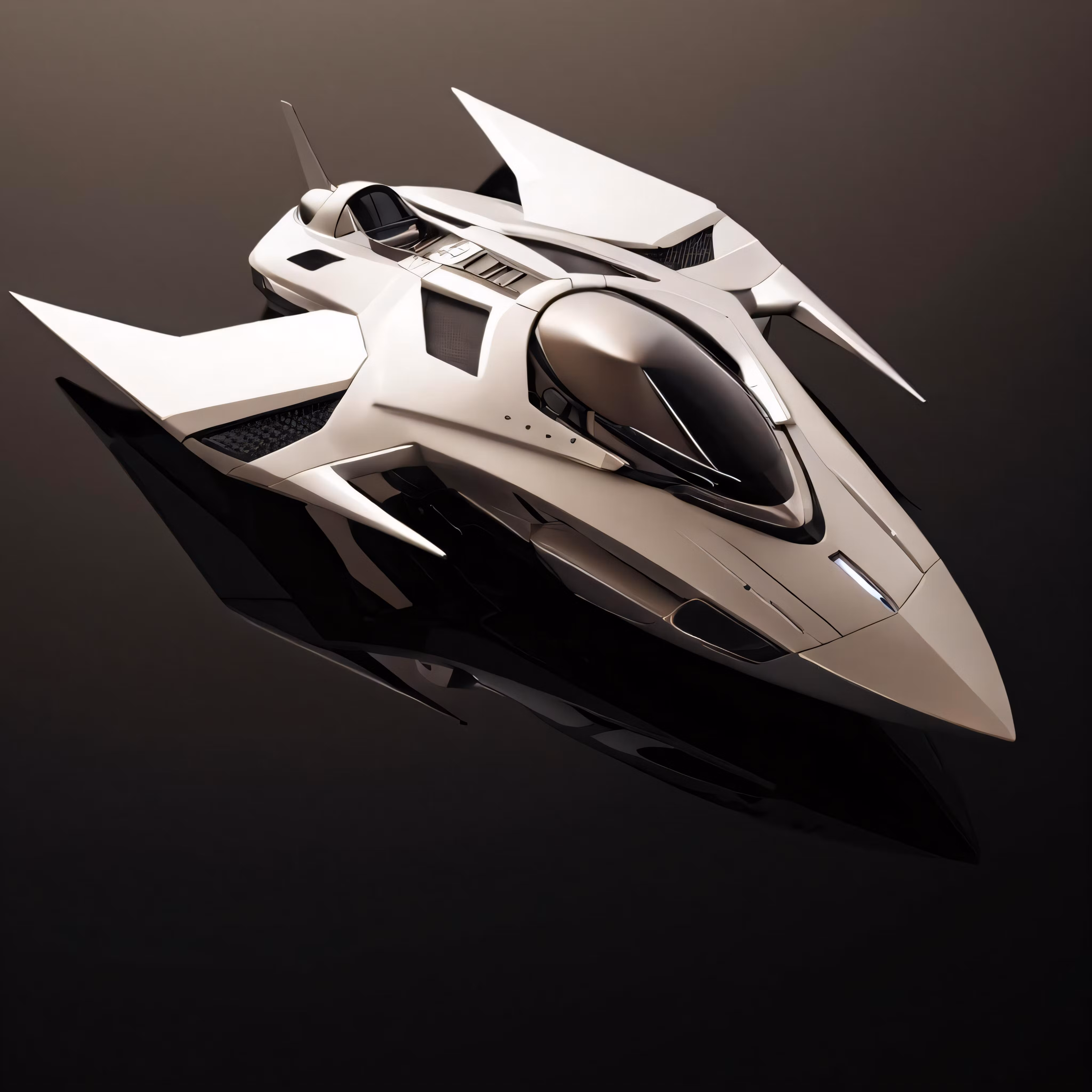 High resolution picture, free to use, a white futuristic vehicle flying through the air