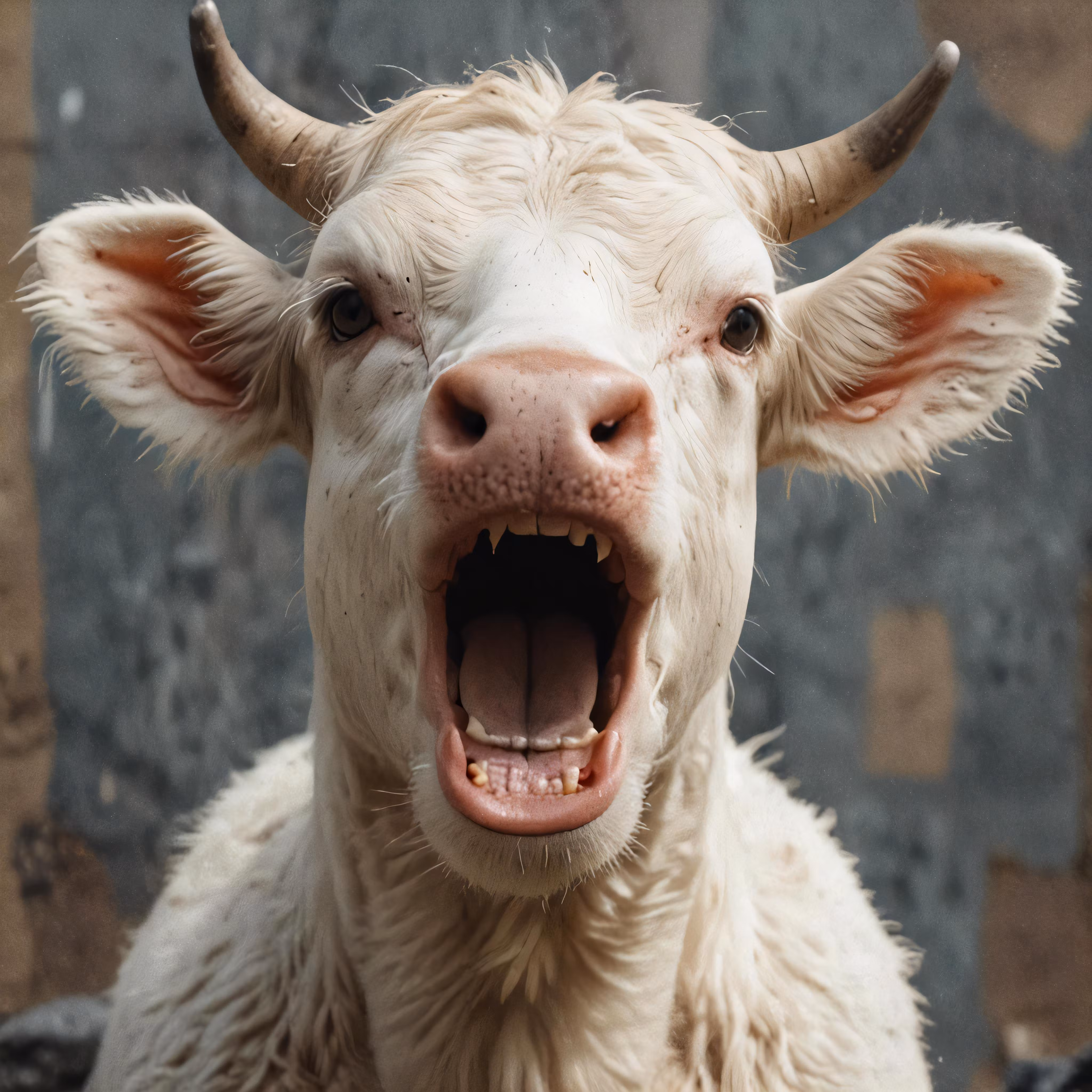 High resolution picture, free to use, a white goat with horns on its head is yelling