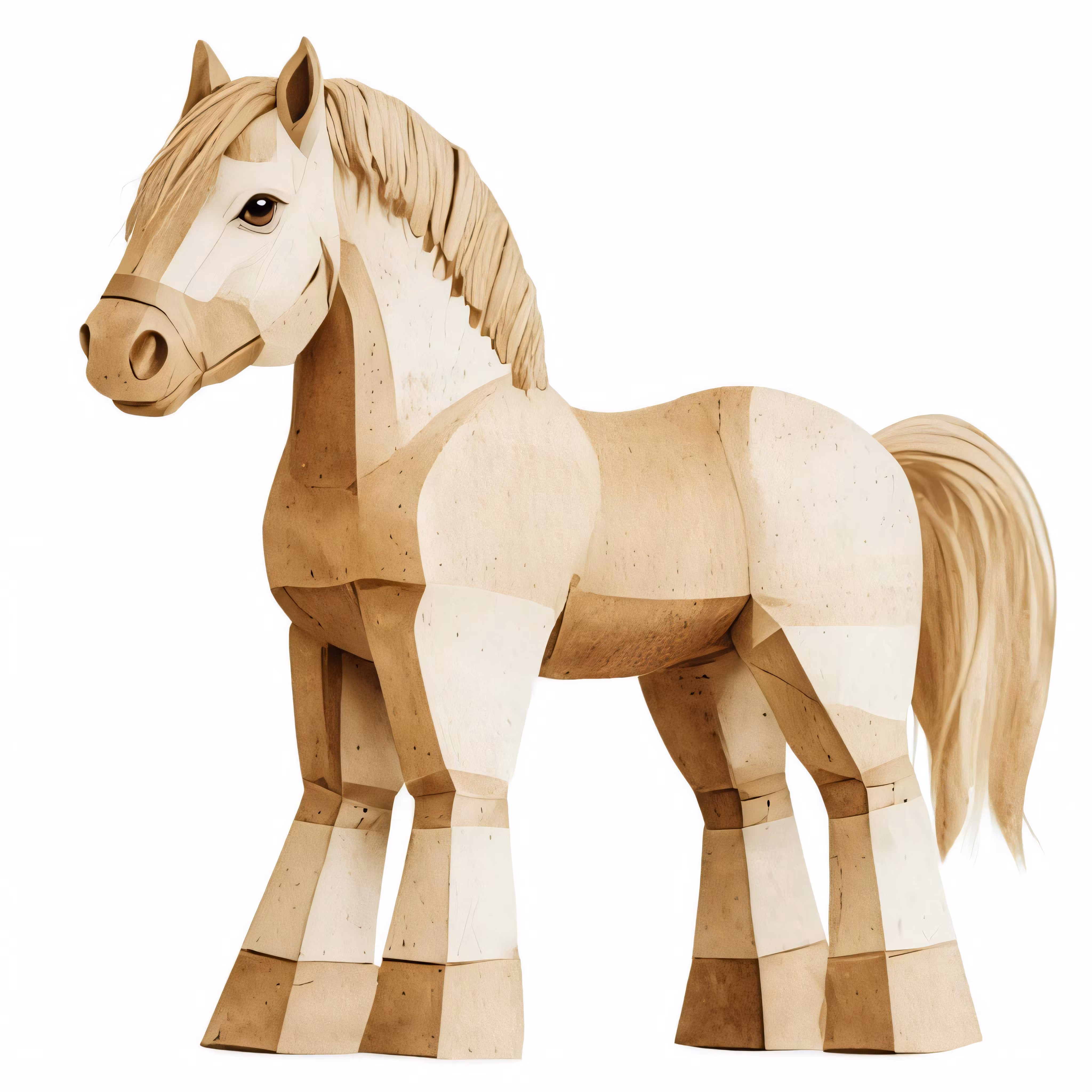 High resolution picture, free to use, a white horse cut out of cardboard on white