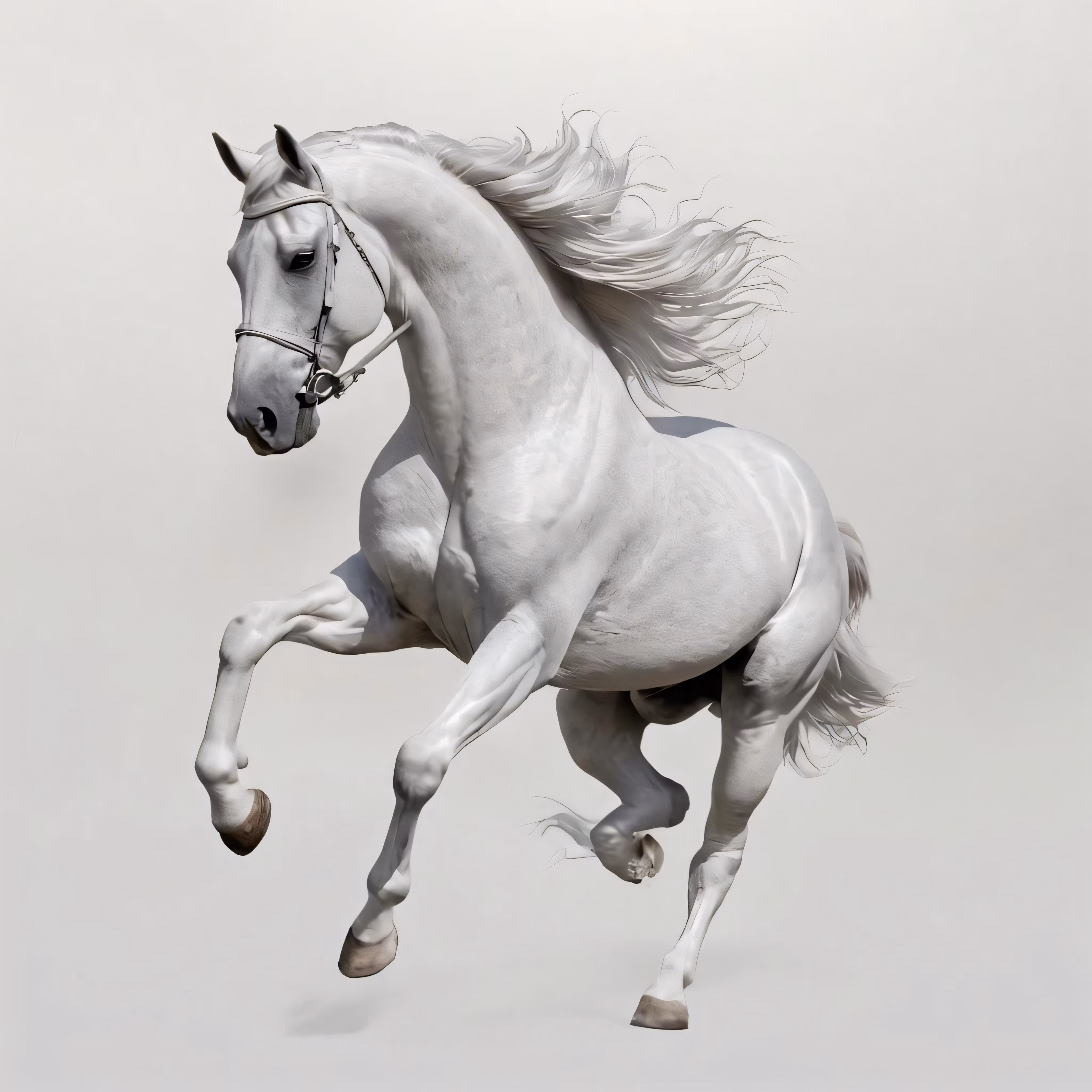 High resolution picture, free to use, a white horse galloping on its hind legs