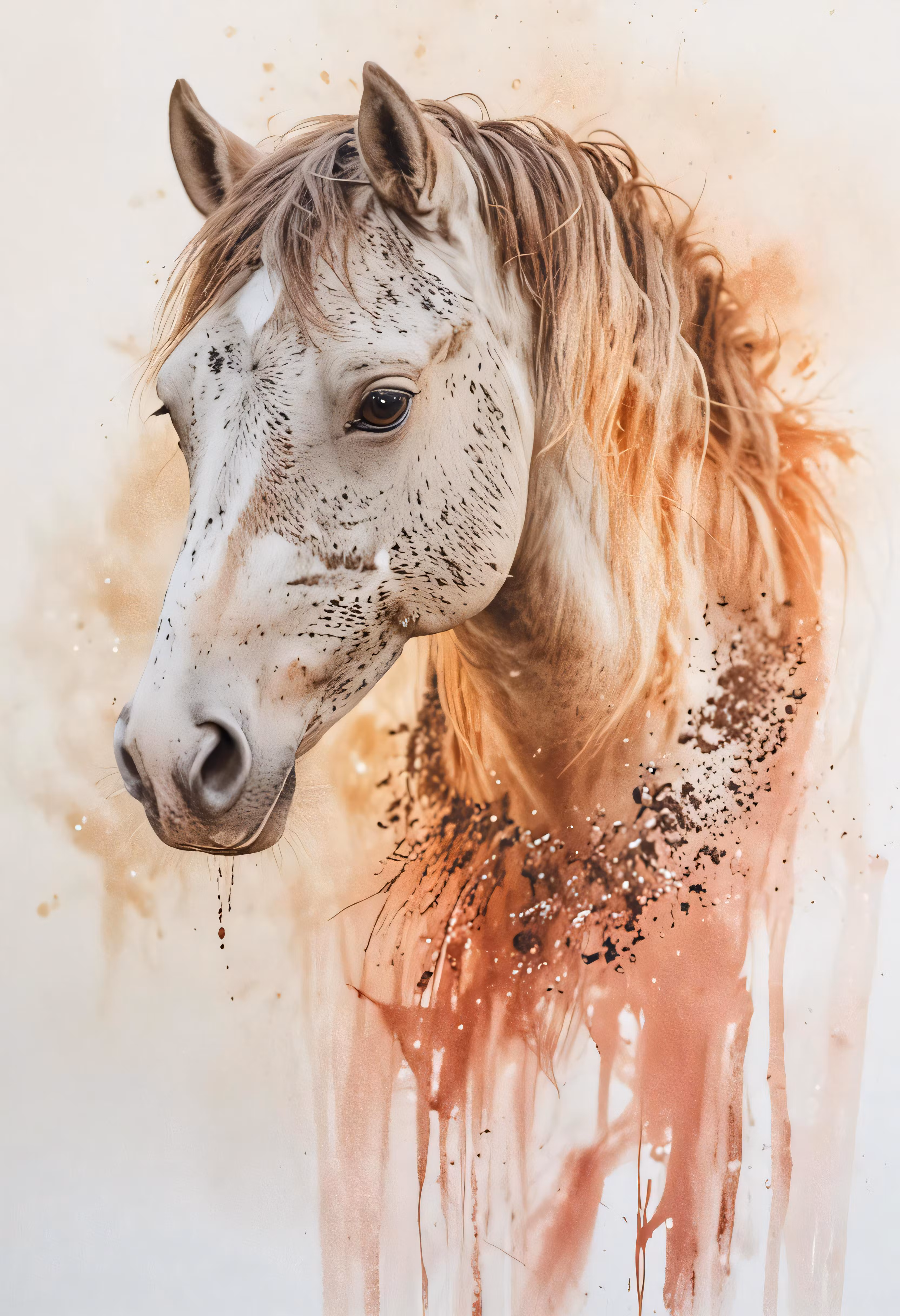 High resolution picture, free to use, a white horse has some black spots on its face