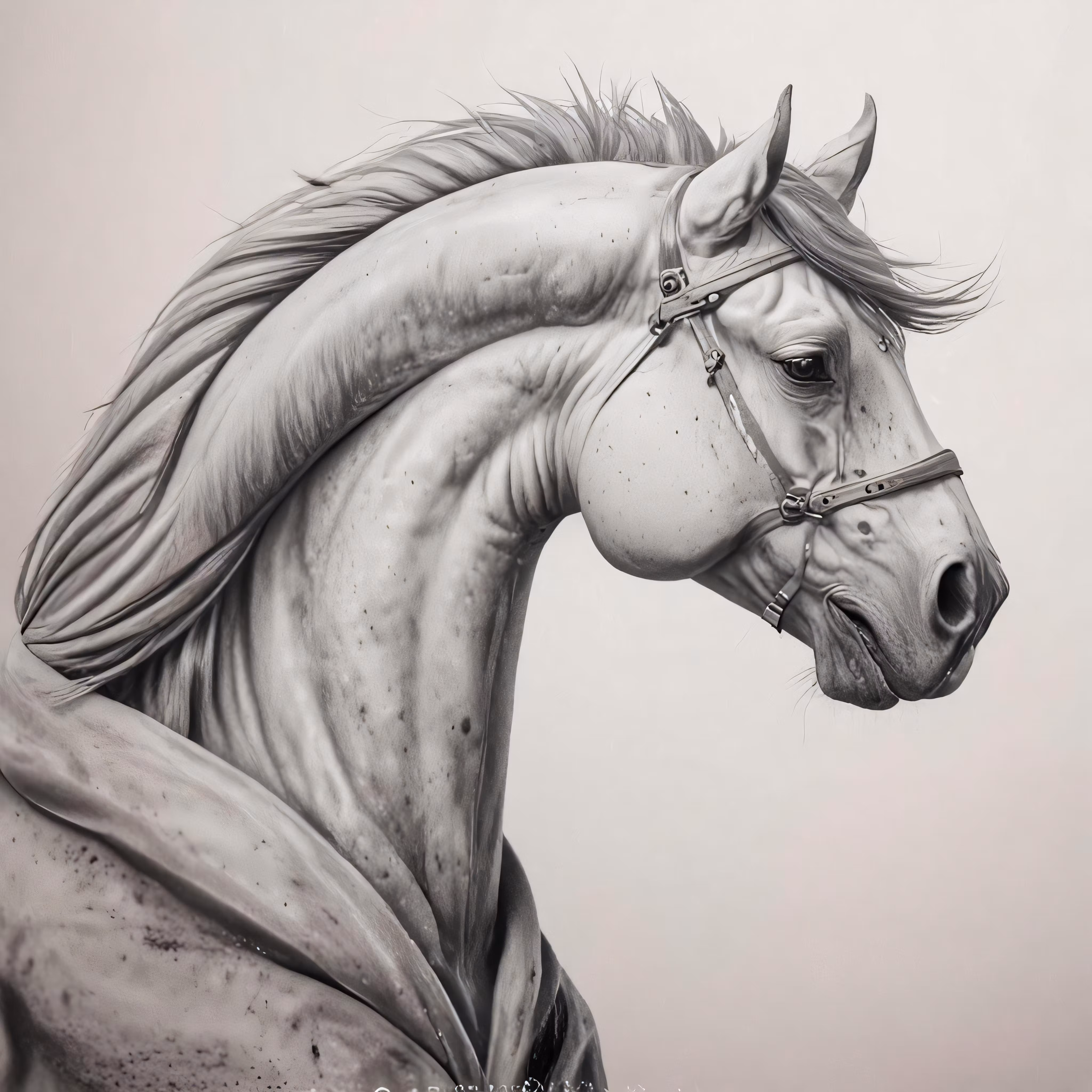 High resolution picture, free to use, a white horse with an intricate mane in a drawing