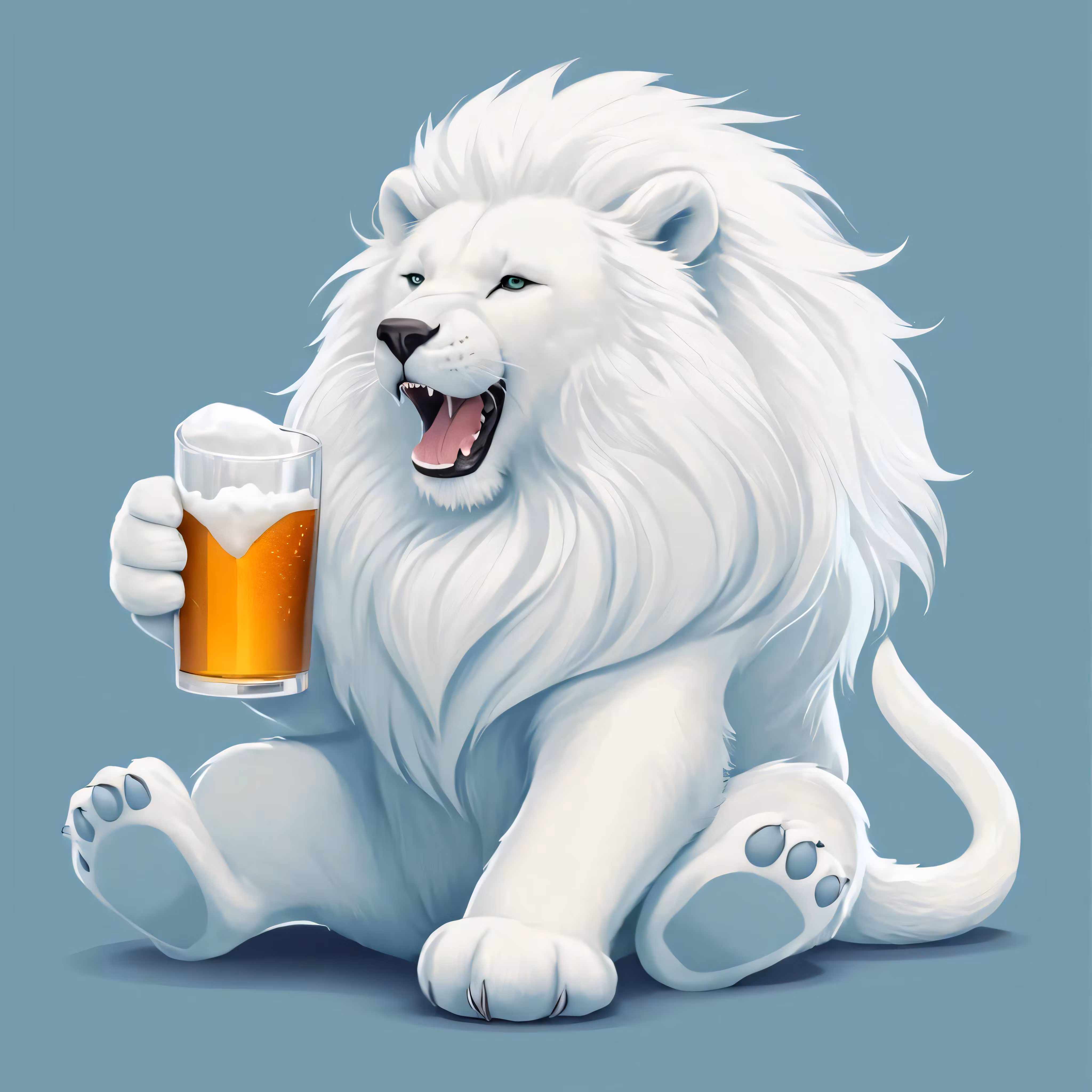 High resolution picture, free to use, a white lion is holding a beer glass