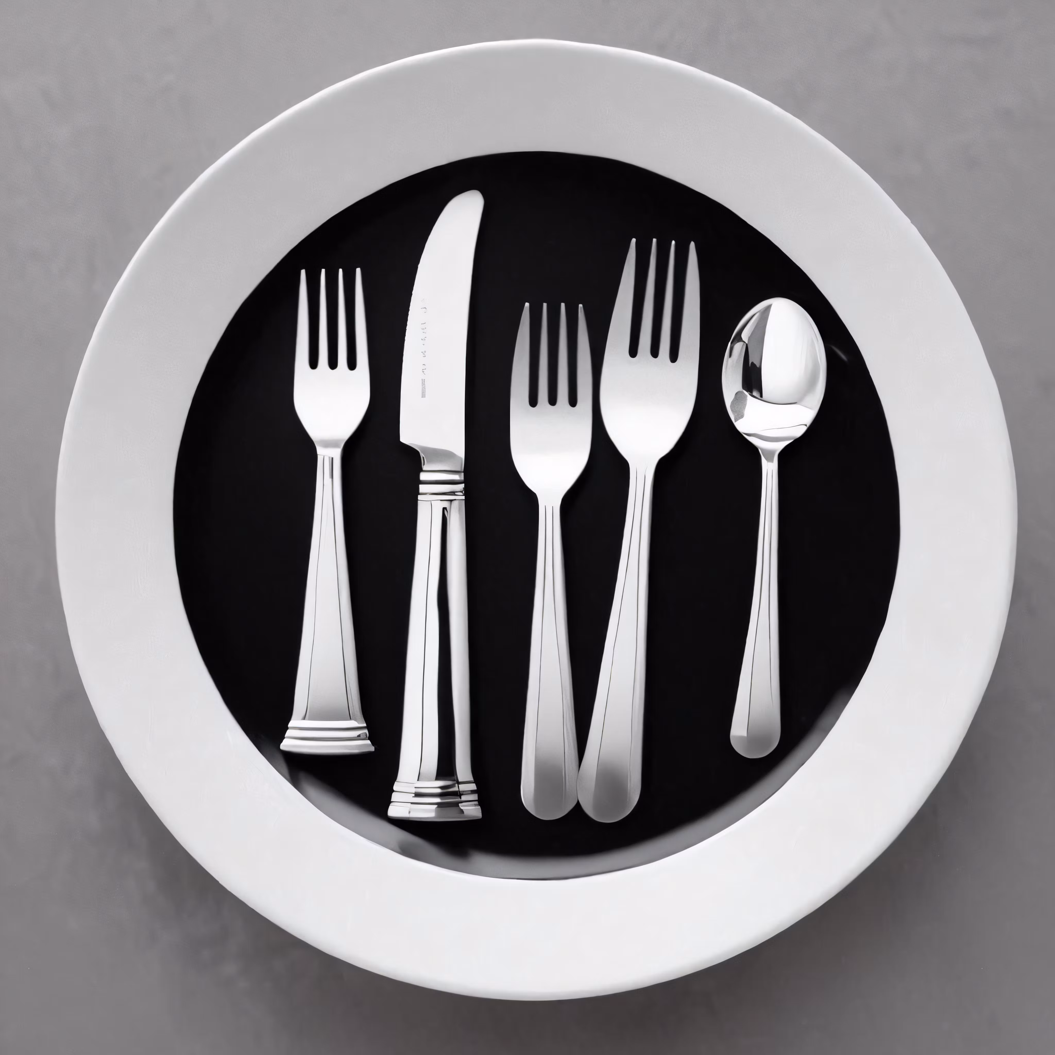 High resolution picture, free to use, a white plate with five pieces of utensils on it